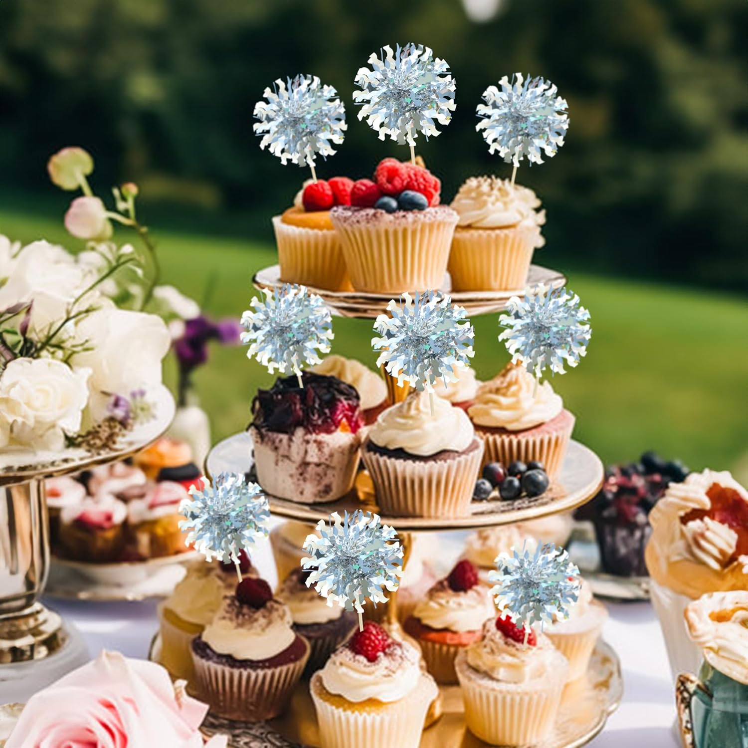 - 【NO Required】: 30Pcs Foil Firework cupcake toppers can put in the cake directly! These 30Pcs Foil Firework Cupcake toppers save your time and super easy to use. You can easily dress up your birthday theme cakes, yes! but don't stop there, put them into desserts, cookies, fruit pieces, appetizers, muffins and so much more!