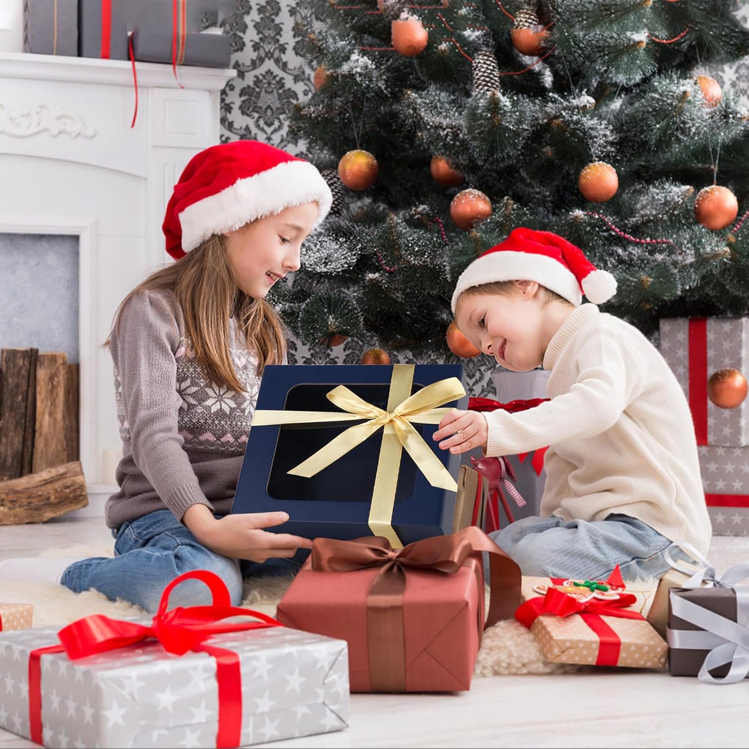- 💝WIDE APPLICATION: The gift box with window can hold clothes, jewelry, photos, perfumes, chocolates, toys and more. It is the ideal gift box for the perfect presentation of gifts. The beautifully wrapped box ensures that your gift is perfect. Make sure to make your gift stand out on Christmas gift, birthday party gift,Mother's Day, Thanksgiving Day gift, wedding gift or any celebration.