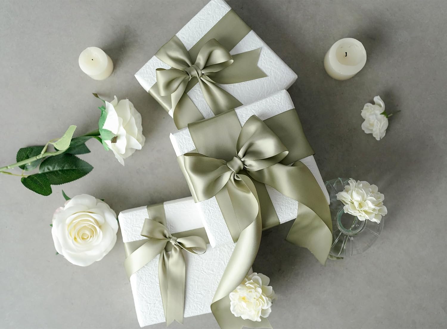 Sage Green Satin Ribbon 2.5 Inch Double-Faced Ribbons 25 Yards for Gift Wrapping Crafts Flower Bouquet Wedding Paper Bows Invitations