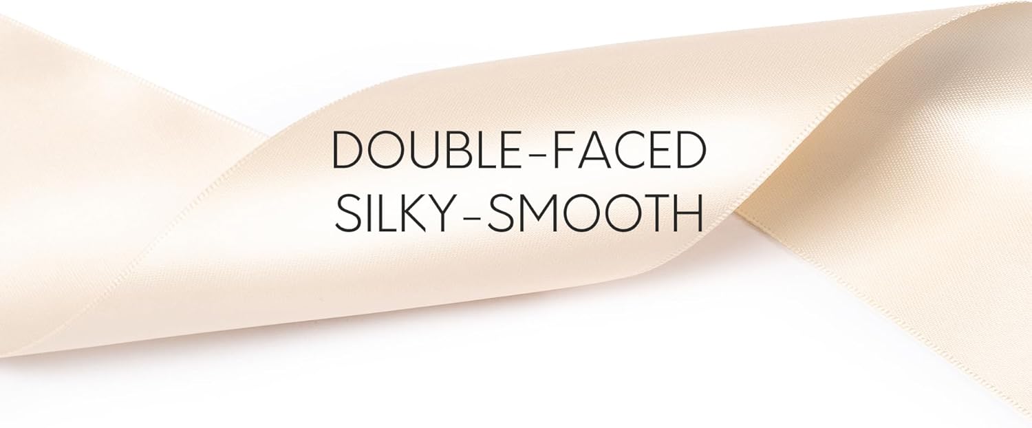 Light Champagne Satin Ribbon 2.5 Inch Double-Faced Polyester 25 Yards Ribbons for Flower Bouquet Gift Wrapping Party Decor Wedding Invitation DIY Craft