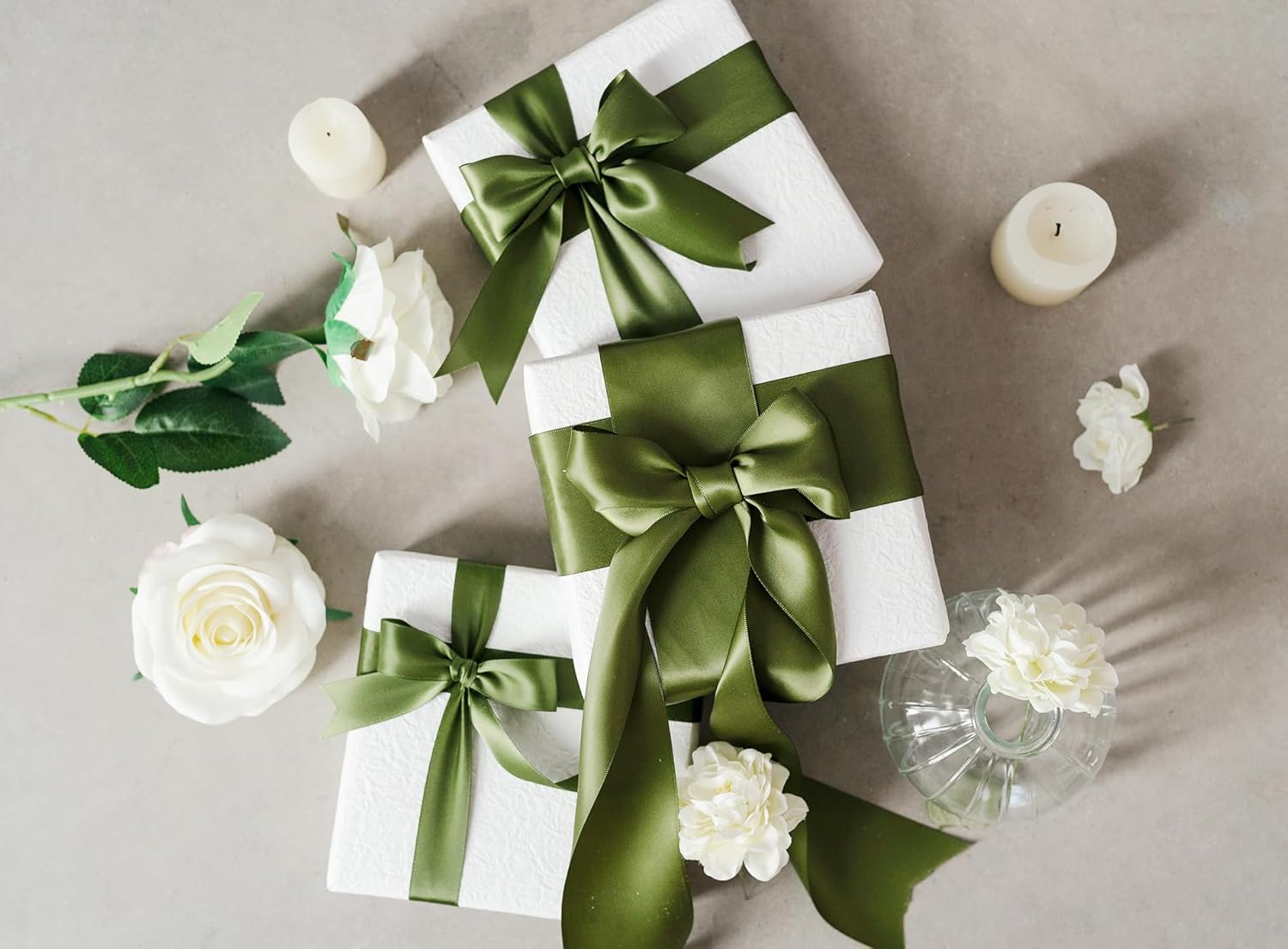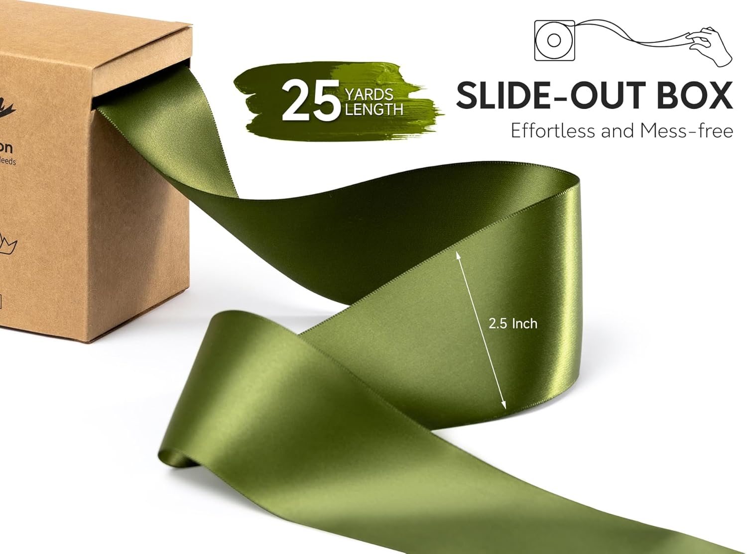 Moss Green 2.5 Inch Double-Faced Satin Ribbon 25 Yards for Gift Wrapping Crafts Flower Bouquet Invitations Holiday Decorating