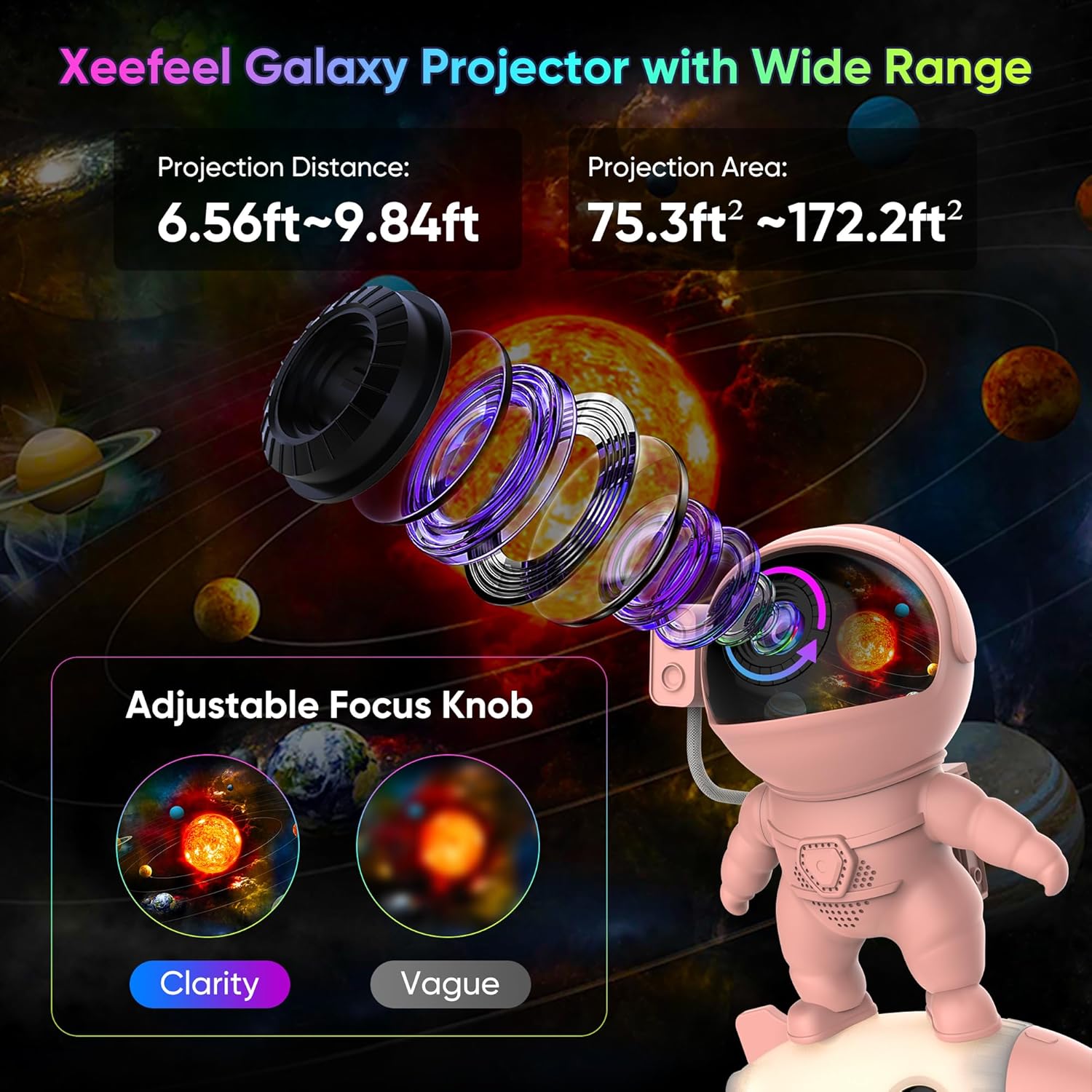 - Perfect Gift and Room Decor: This galaxy projector ideal for birthdays, Children's Day, Christmas, or simply enhancing your room's ambiance. Best used in dark environments at a distance of 6.56 ft for optimal effect. This astronaut galaxy projector is a thoughtful gift for both kids and adults. If you have any questions, please let me know.