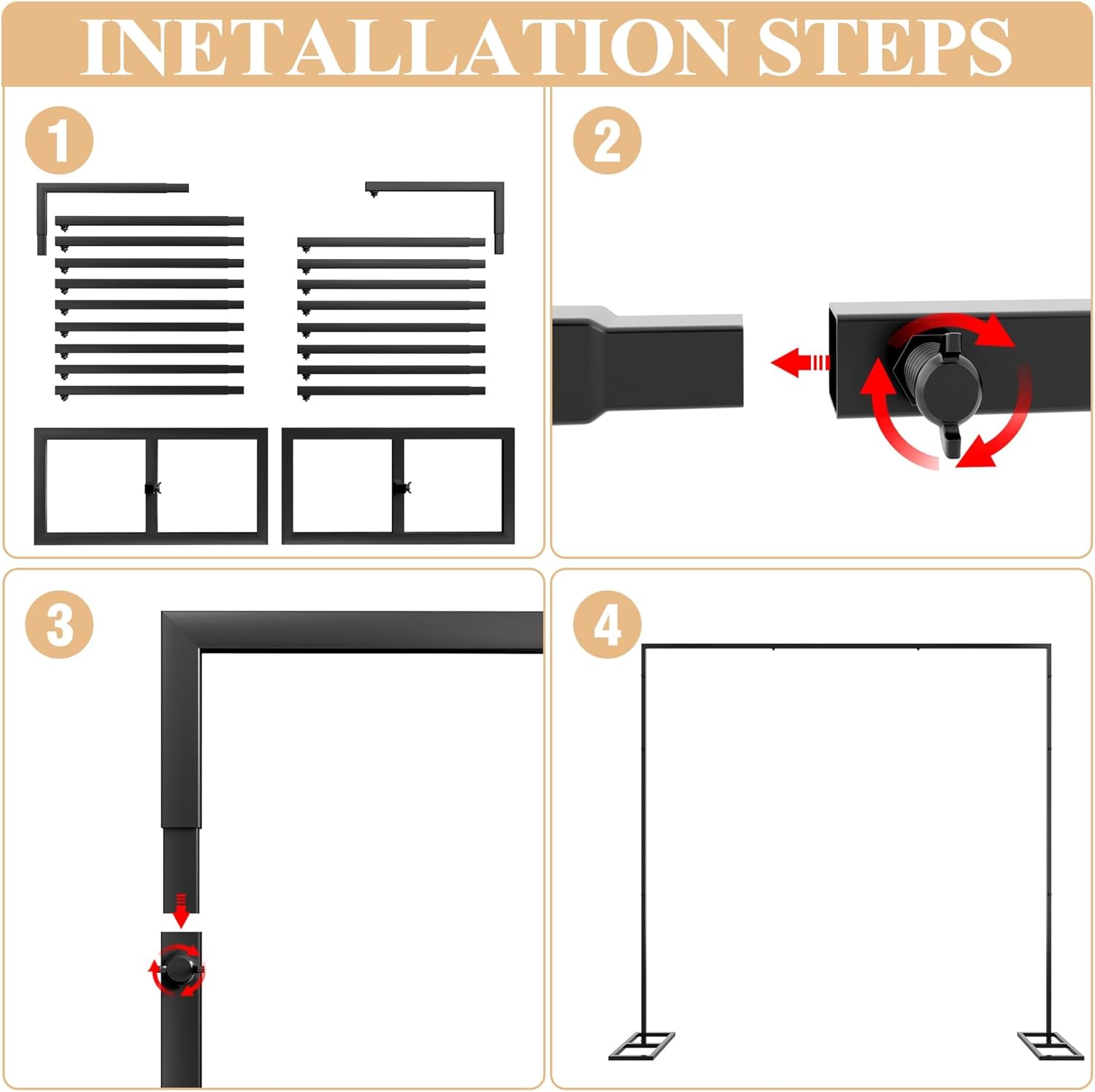 - 【Wide Uses】Heavy duty photography white backdrop stand will be a nice choise for weddings, receptions, parties, birthdays, bridal and baby showers, photography, photo booths, banner stand backdrop, business events, etc. This square arch backdrop stand would be a great scenery at your event!