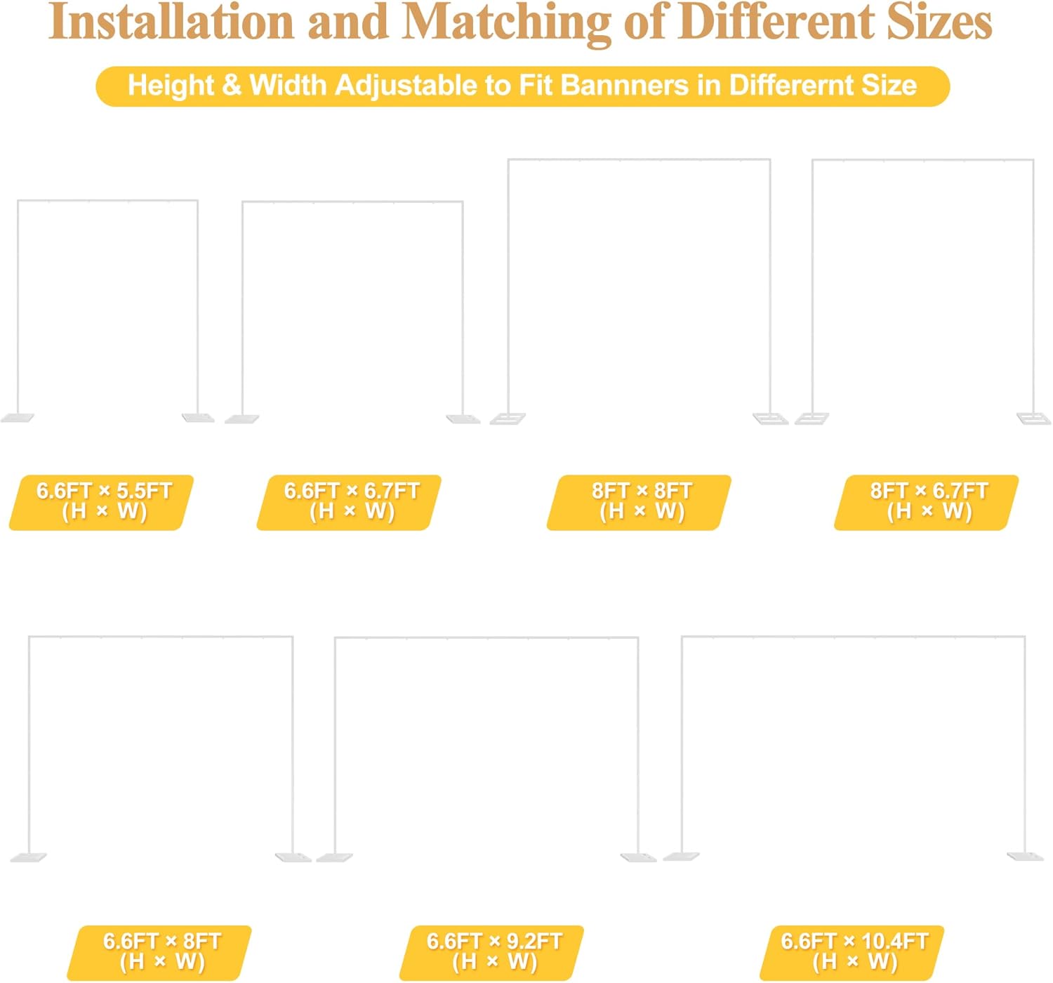 - 【Wide Uses】Heavy duty photography white backdrop stand will be a nice choise for weddings, receptions, parties, birthdays, bridal and baby showers, photography, photo booths, banner stand backdrop, business events, etc. This square arch backdrop stand would be a great scenery at your event!