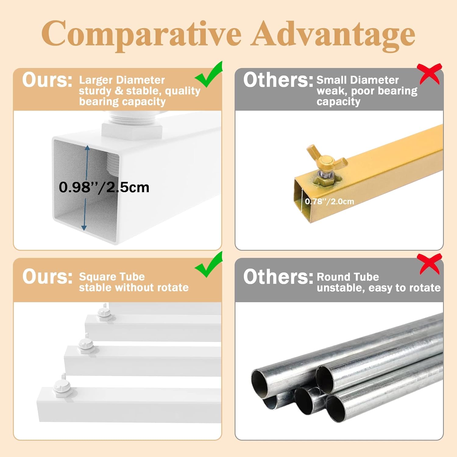- 【Heavy Duty Backdrop Stand】8x8 ft/2.4x2.4 M square backdrop stand heavy duty with base is made of 1.0mm thick high toughness and anti-rust square steel pipe, more stable than circular tube without easily twist. Sturdy base legs provides a firm and balanced support of metal photo backdrop stand, safe and secure.