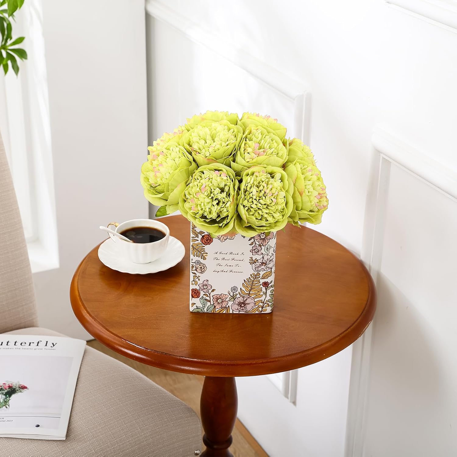 U'Artlines 10 Heads Artificial Peony Silk Flower Leaf Home Office Wedding Party Festival Bar Decor (Green)