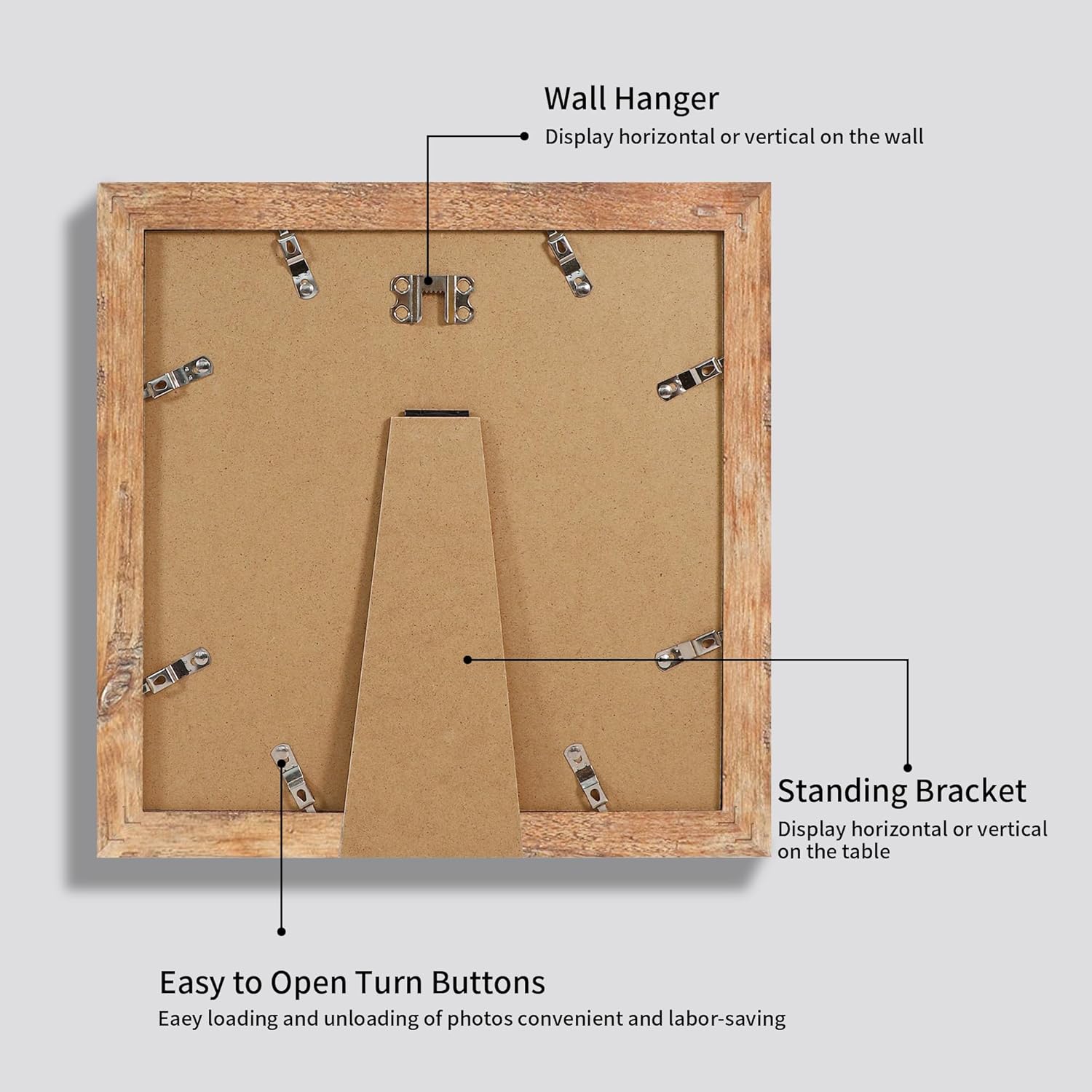 - A Variety of Display Methods: Our picture frames could be hang vertically or horizontally, placed on a desk by their easel-back, or hang on the wall with the mounted hanging hanger.