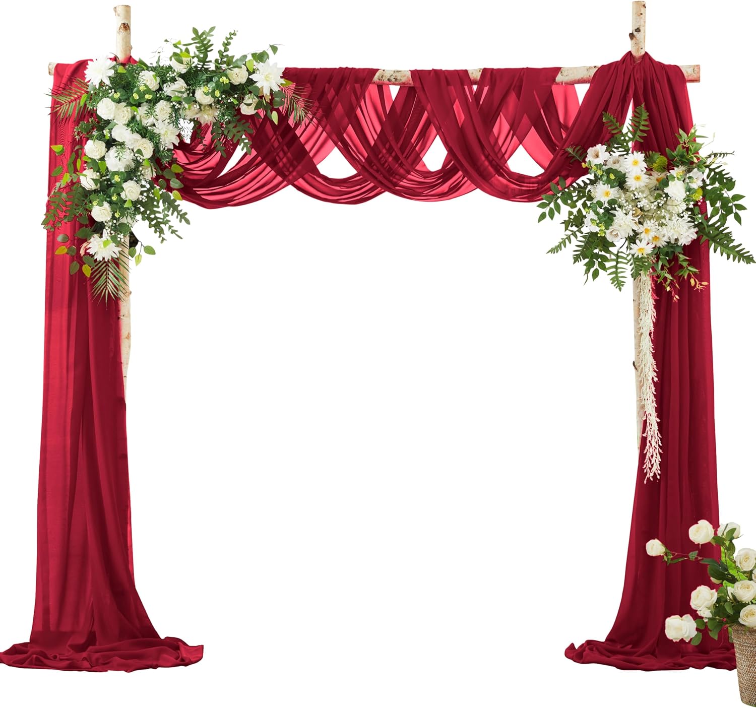 VACVELT Wedding Arch Draping Fabric - Burgundy Chiffon, 2 Panels Sheer Drapes, 30 Inch x 20ft Backdrop Curtain for Outdoor Wedding Ceremony Decor