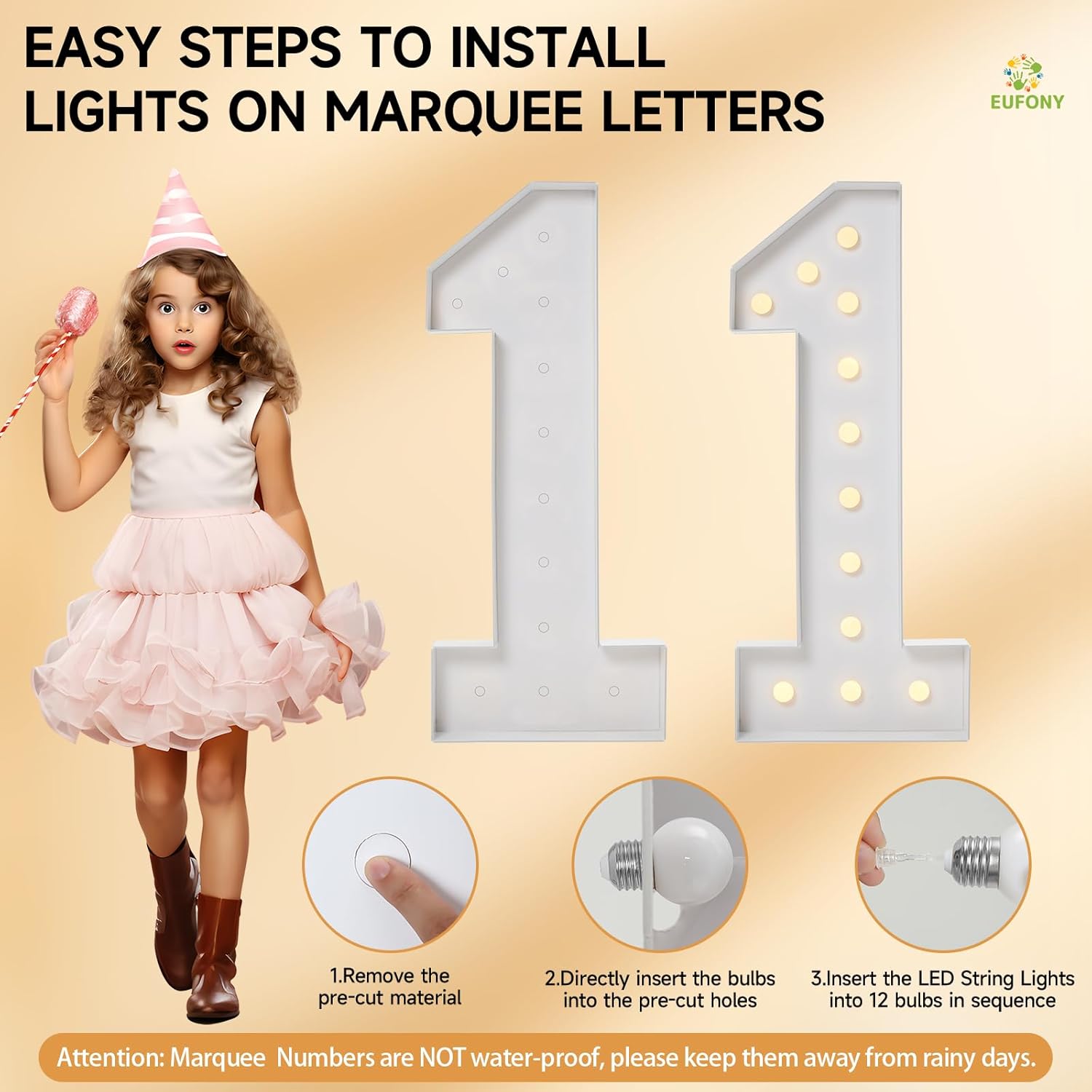 - 【Assembly Needed】Crafted from pre-cut FOAM BOARD with guiding edge marks, our large marquee numbers ensure easy, precise assembly. Simply apply double-sided tape to the base surface (not the sides) and attach the side walls. NOTE: Our lighted numbers assembly process differs from other brands. Be sure to watch our included step-by-step instructions or tutorial videos for best results.