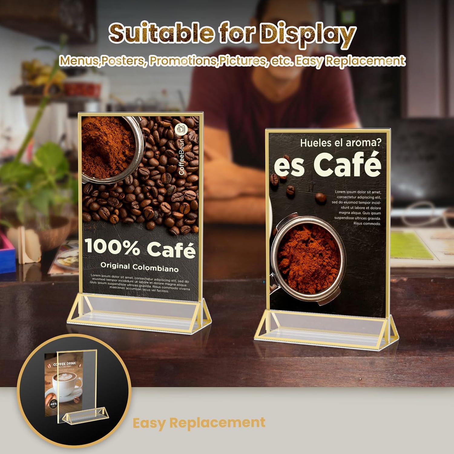 - 【Premium Acrylic Material】Our acrylic 4 x 6 gold sign holders are made of high-quality acrylic plastic glass, which can effectively resist falling. The clear acrylic sign holder will not dim or turn yellow under continuous exposure to the sunlight which offers a superb display effect.