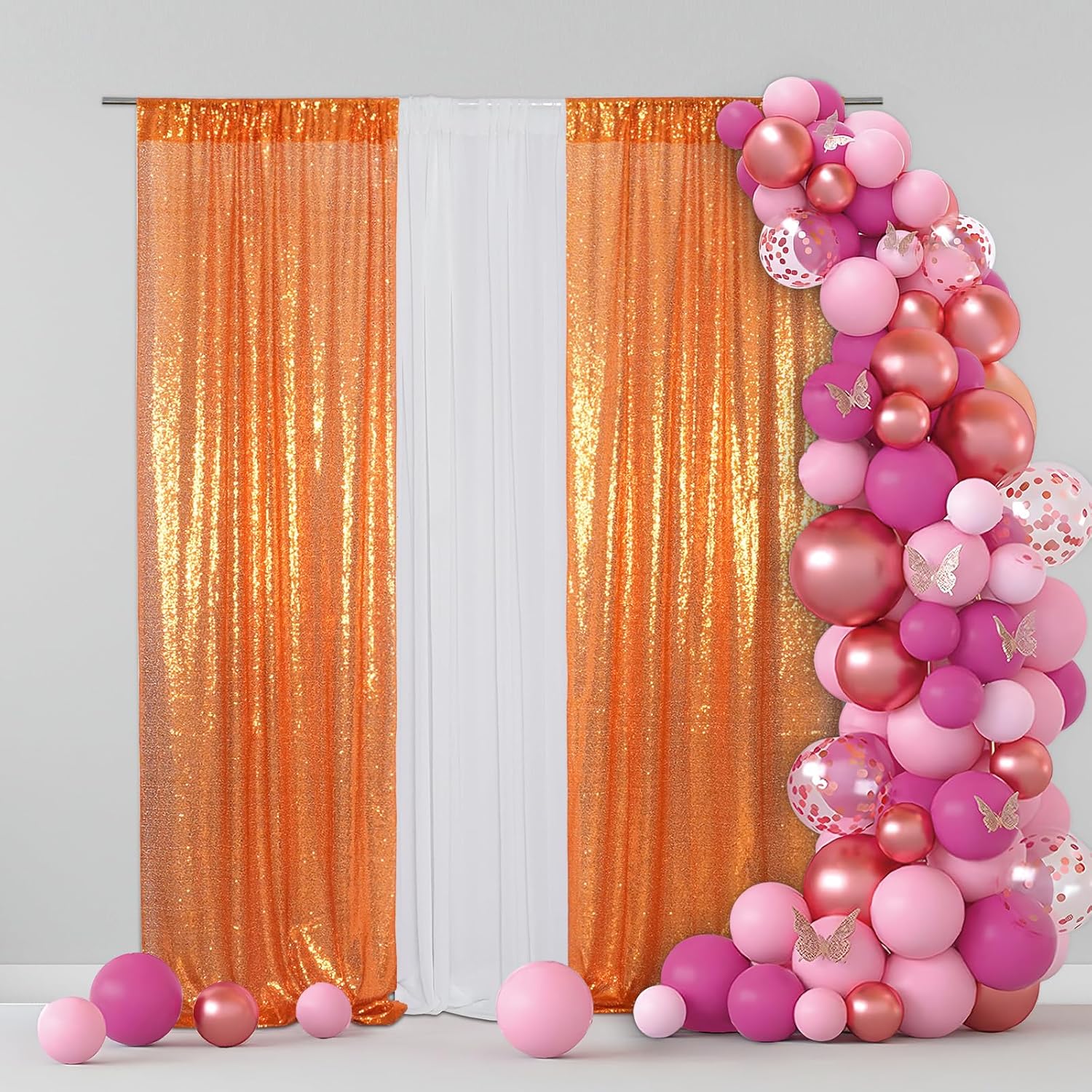 Eternal Beauty Sequin Backdrop Curtains, 2x8 Ft-2 Panels Orange Back Drop for Shimmer Photography Party Wedding Birthday Decor