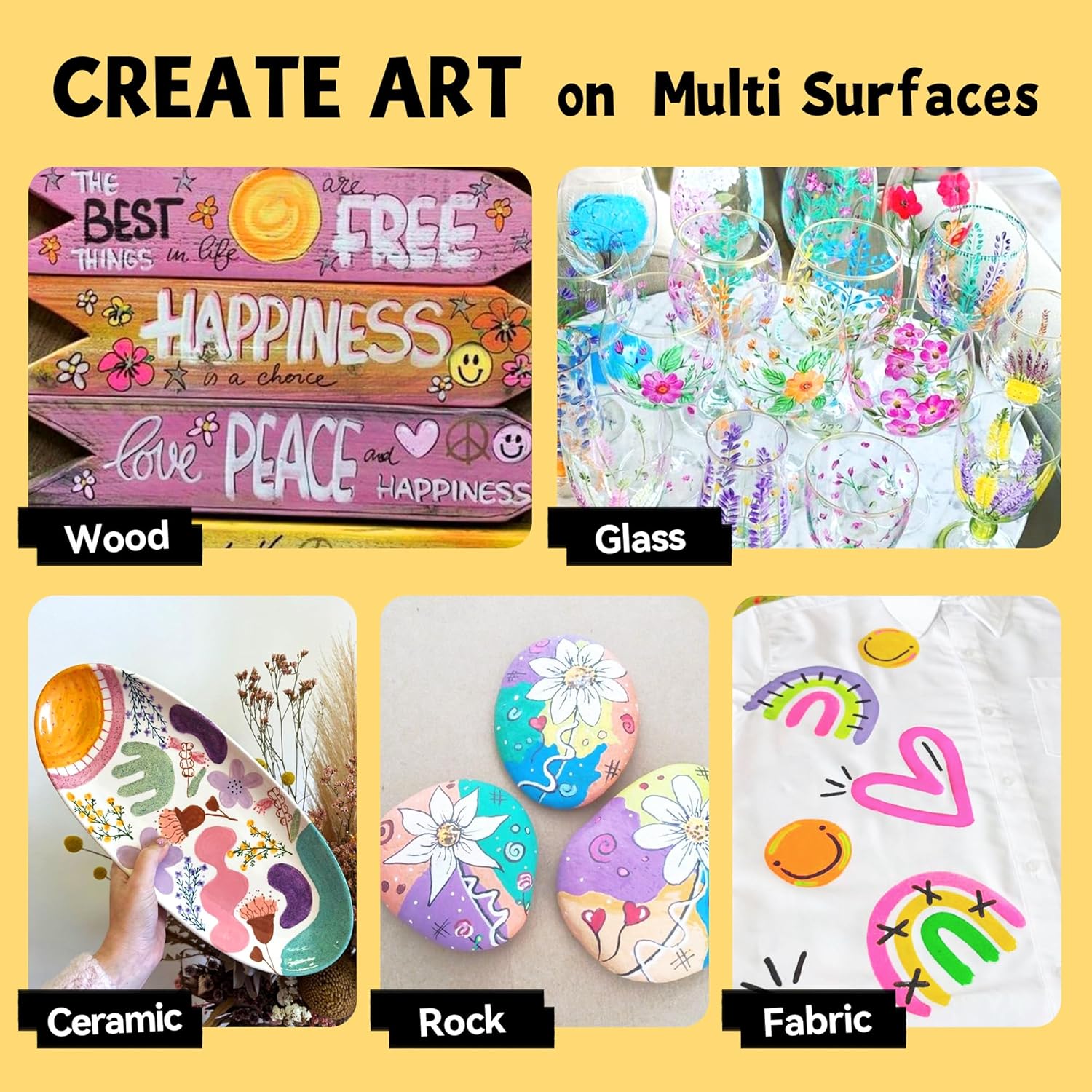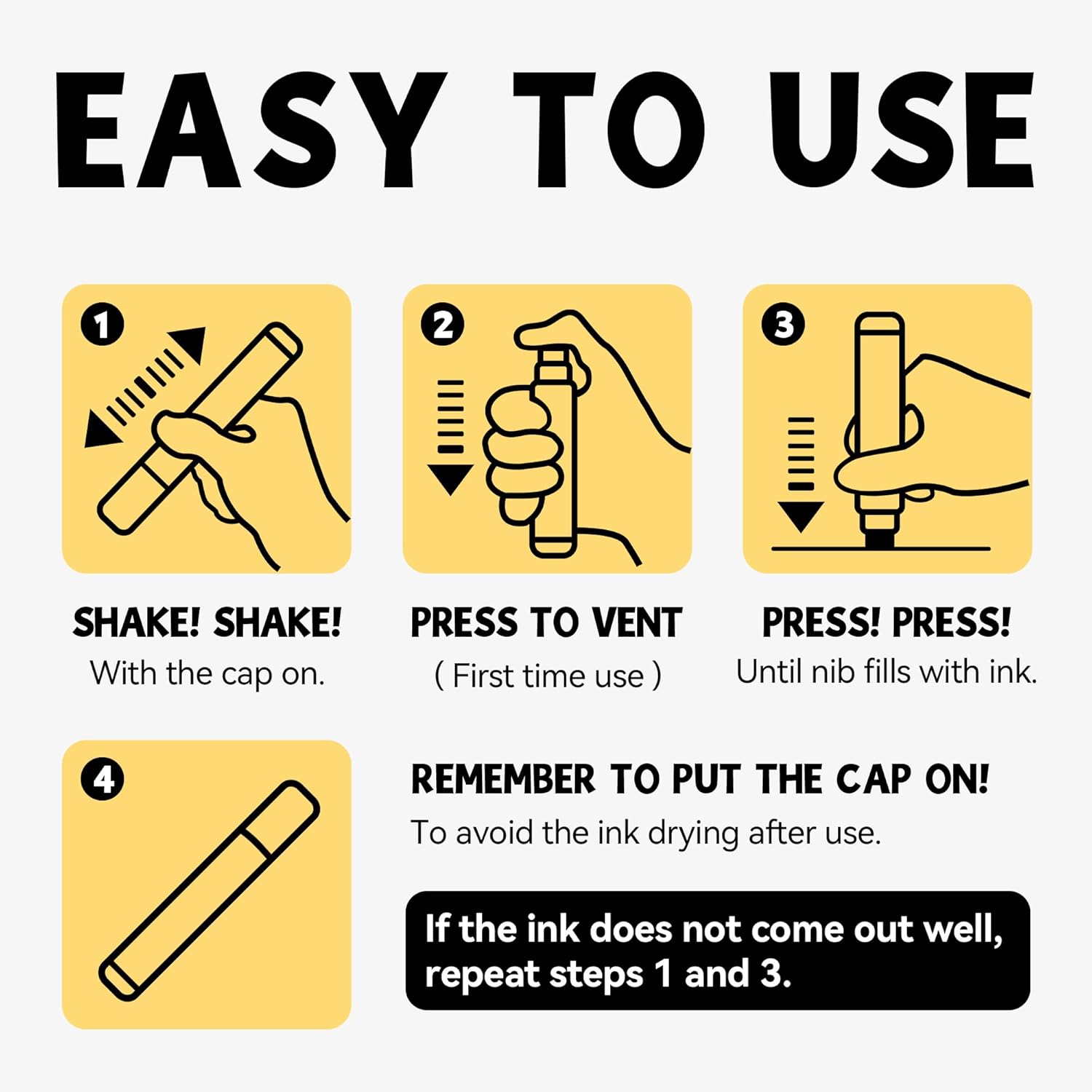 - Non-Toxic and Safe – SRUOLOC paint markers are non-toxic, Each thick permanent marker meets ASTM d-4236 and EN-71 safety standards, are suitable for artists of all ages, working seamlessly on rock, fabric, glass, wood, plastic, paper, and more