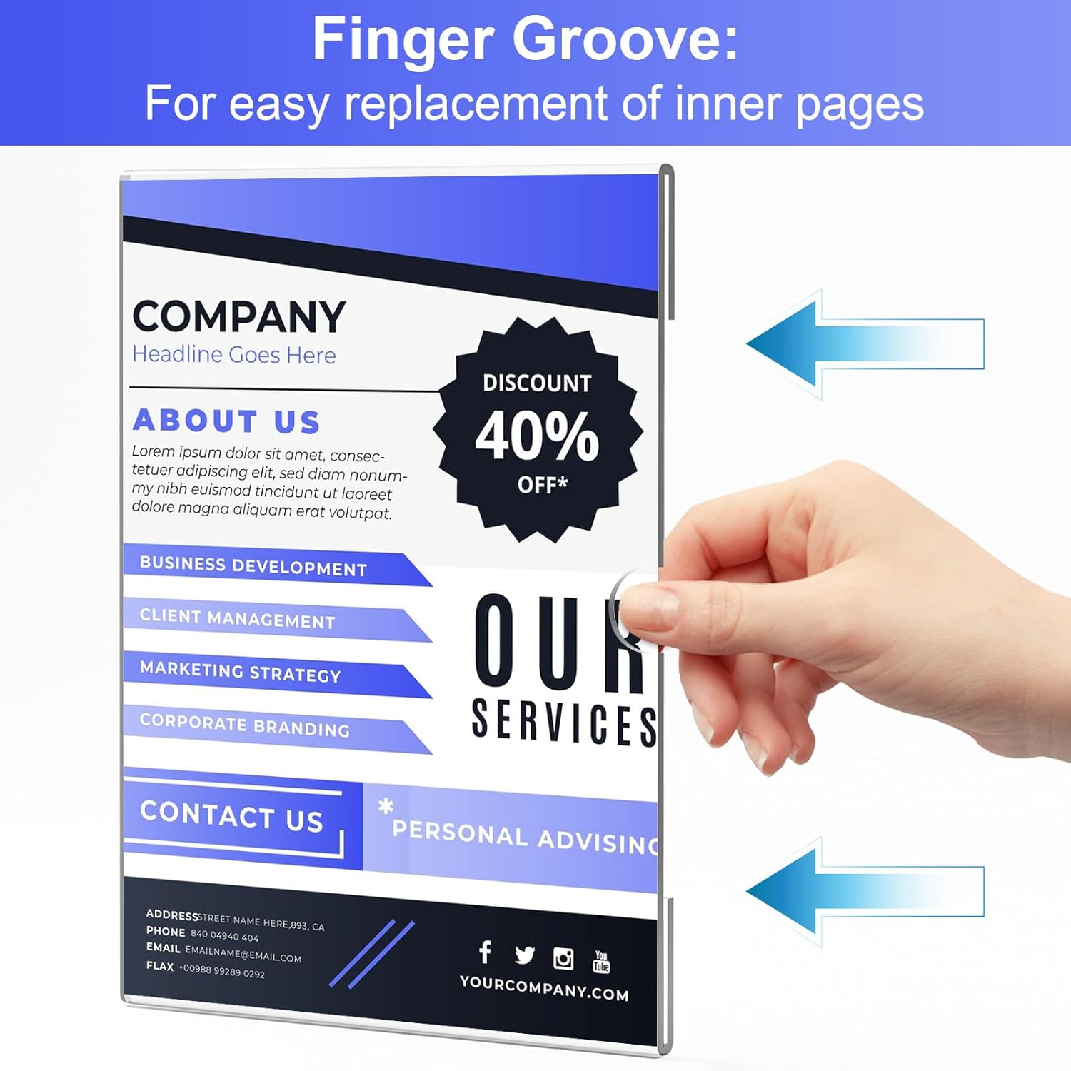 - ✔ 【𝐇𝐢𝐠𝐡-𝐐𝐮𝐚𝐥𝐢𝐭𝐲 𝐌𝐚𝐭𝐞𝐫𝐢𝐚𝐥】Our 8 1/2 x 11 acrylic sign holders are meticulously crafted from high-quality acrylic material, ensuring exceptional transparency to present your sign holder with a clear image。Please remove the protective film on the acrylic panel and base which designed to prevent scratches on the product before using.