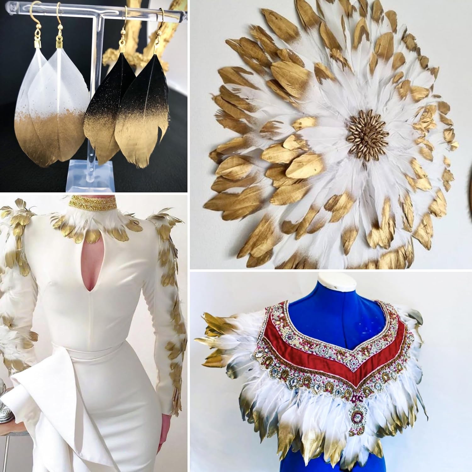 - Unique Dipped Gold Design: This golden feather is permanent and hand-picked to be scratch-resistant and colorfast. Glittering feathers, is a great choice for craft lovers