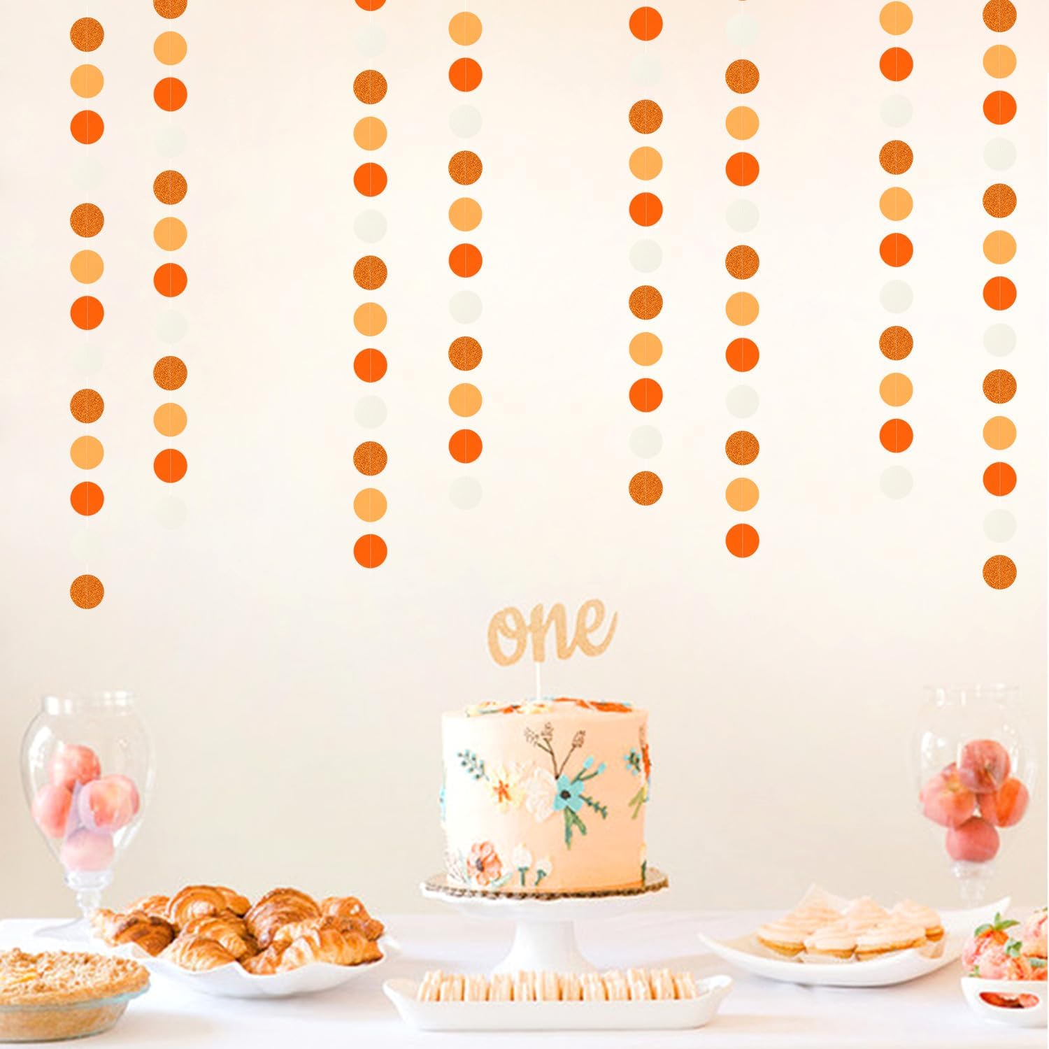 - PACKAGE CONTAINS: This set has four Orange-Beige circle paper garland,the length of each strand is 4 meters/13 feet, the total length is 16 meters/52 feet.The size is 2IN.