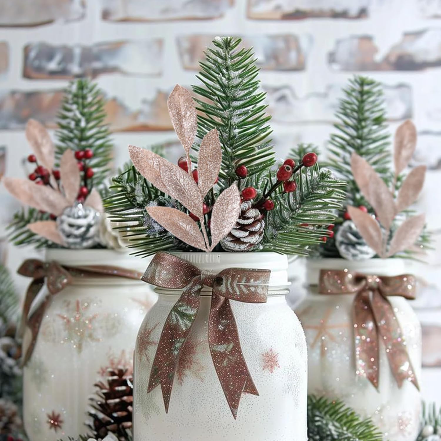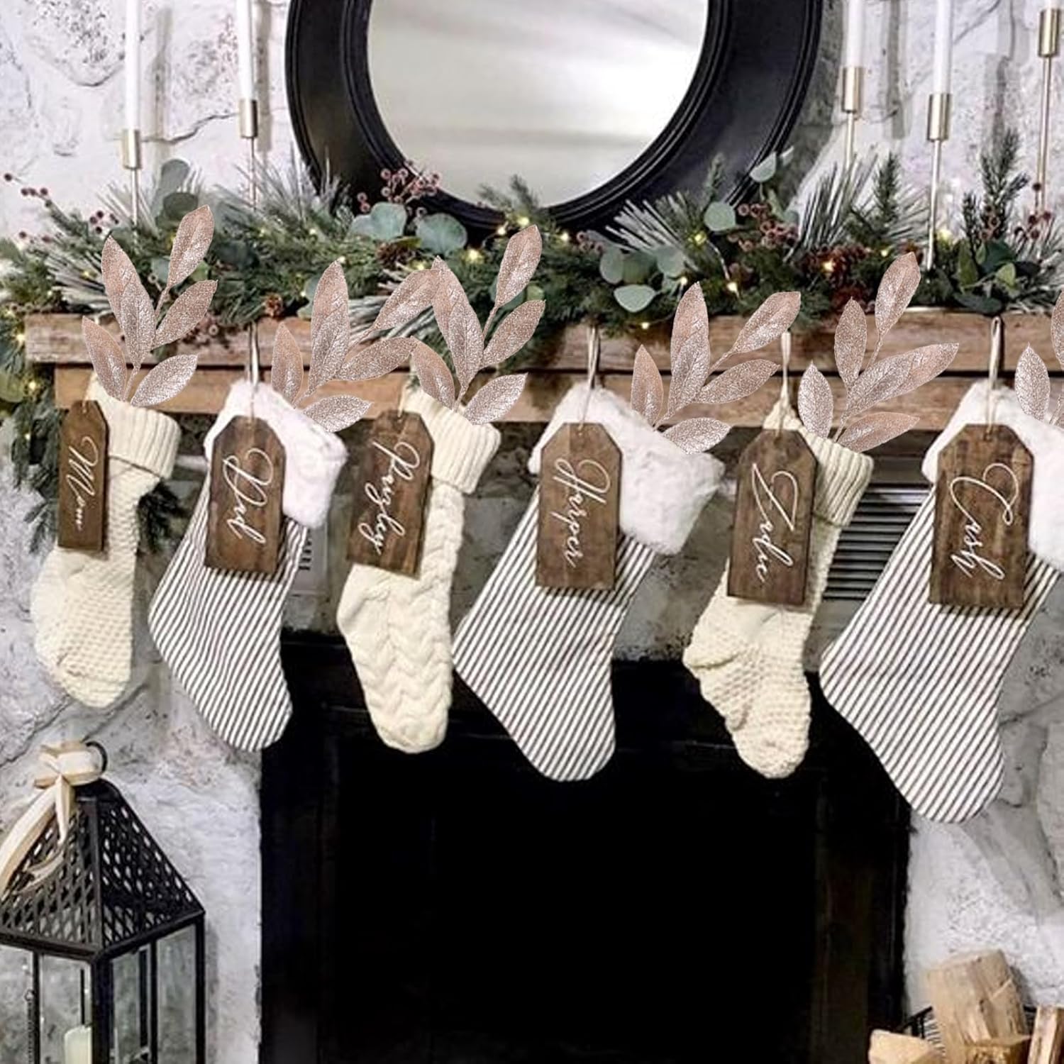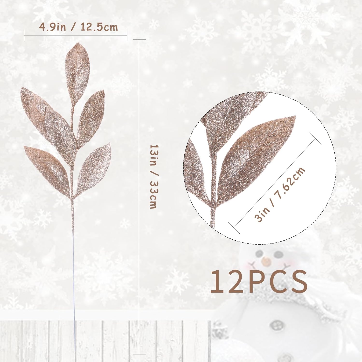 GREENTIME 12 Pack Artificial Champ Glitter Leaves 13" Fake Christmas Picks Decorative Glitter Sticks for Vase Christmas Tree DIY Wreath Crafts Fireplace Decor