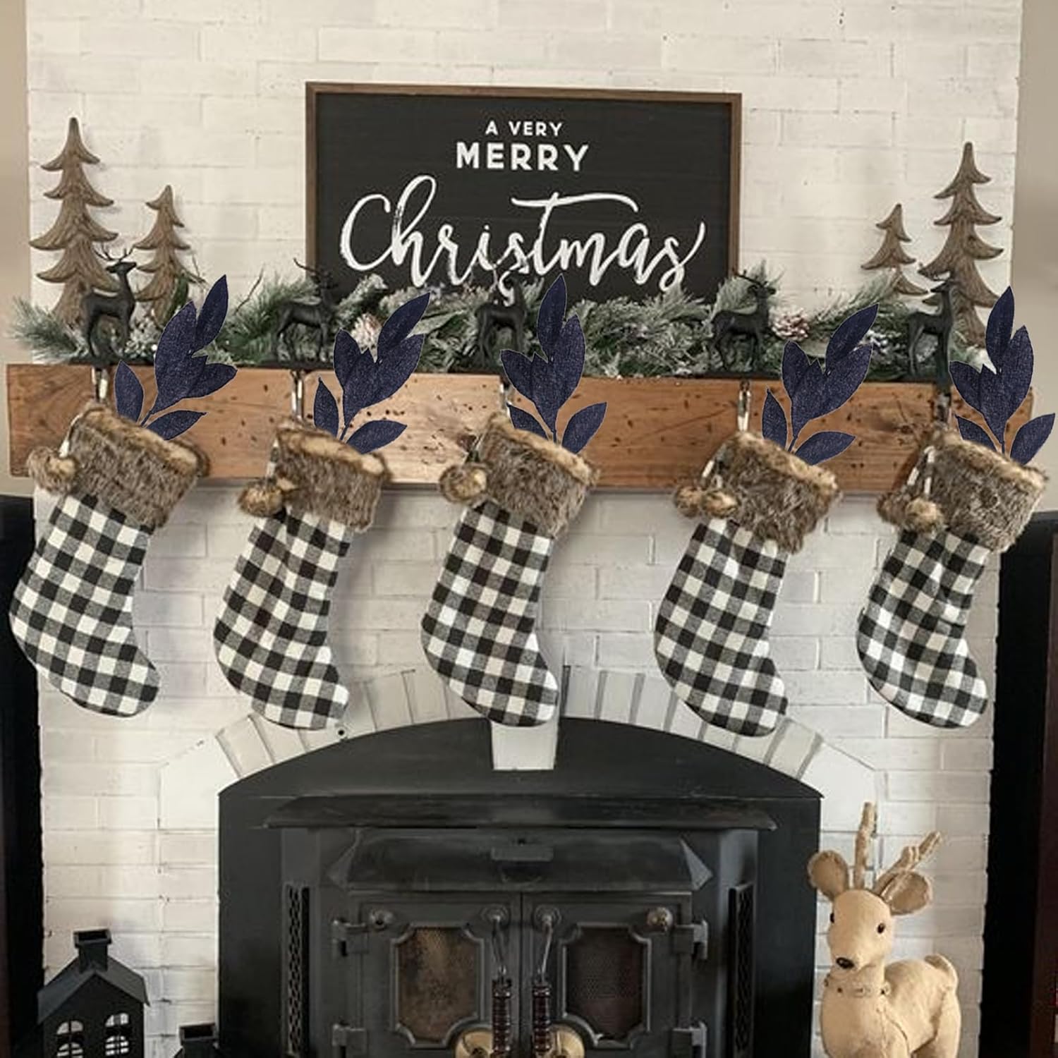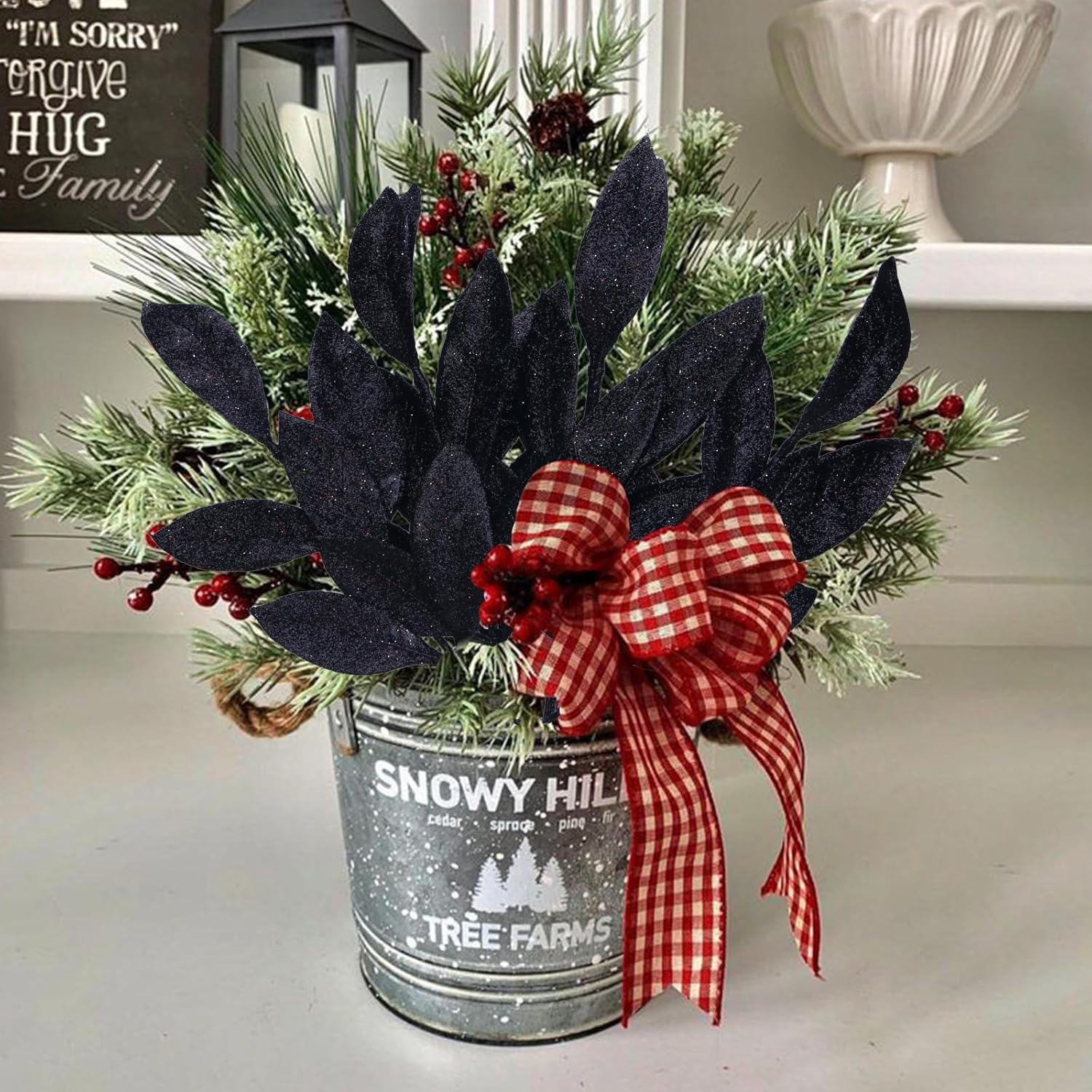GREENTIME 12 Pack Artificial Black Glitter Leaves 13" Fake Decorative Glitter Sticks for Vase Christmas Tree DIY Wreath Crafts Fireplace Halloween Decor