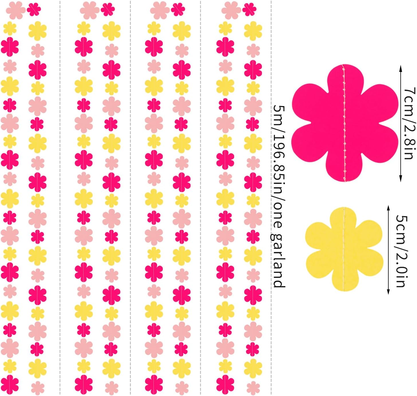 - 【Hot Pink Yellow Party Decorations Kit Includes】The party garlands includes 4pcs paper garlands, each backdrop bunting is 13 feet/ 4 meters long, total length is 52 feet/16 meters.