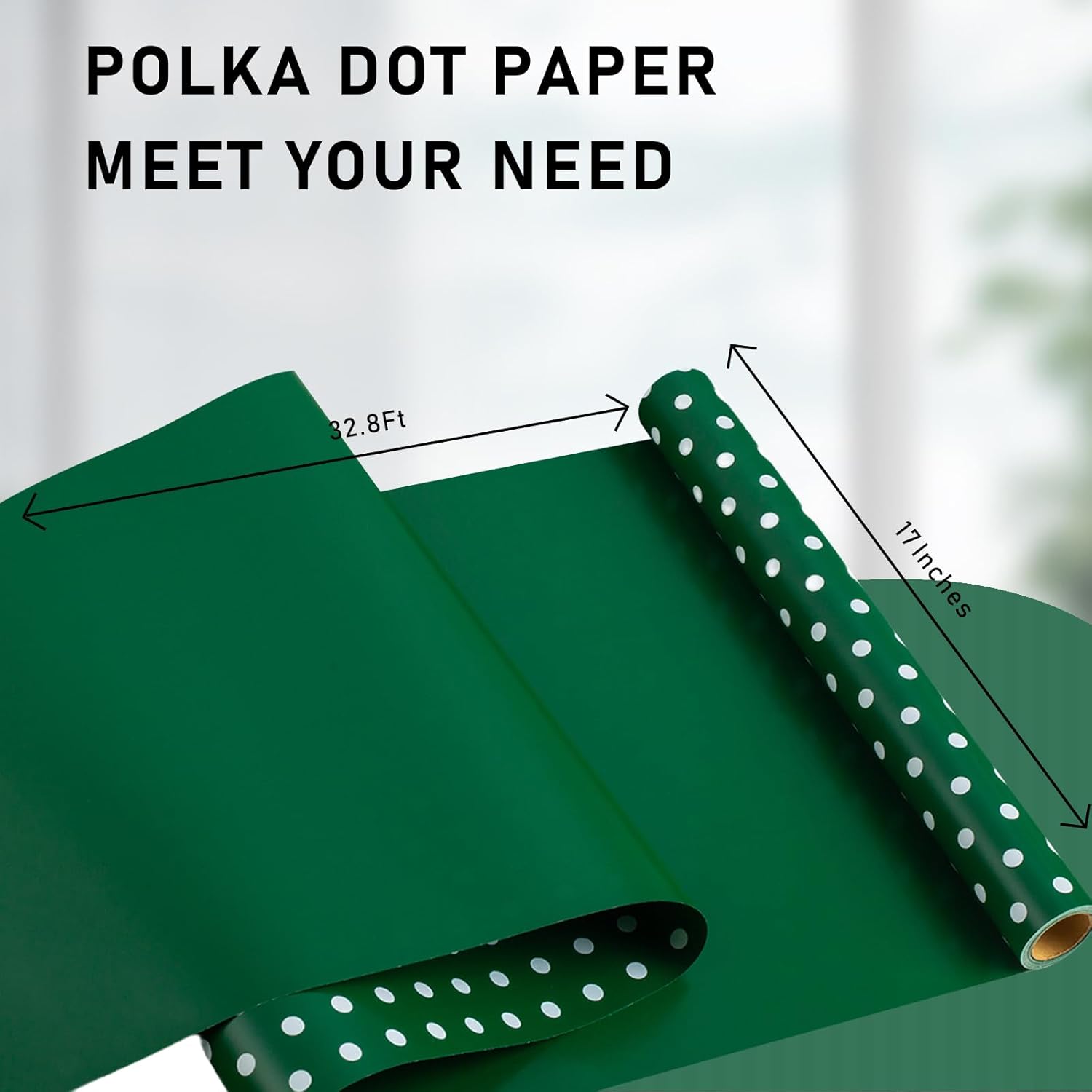 Flyhill Green Wrapping Paper Roll,Reversible Gift Wrap Paper with Polka Dot Design for Birthday,Christmas,Holiday,Party(17 Inch X 32.8 Feet)