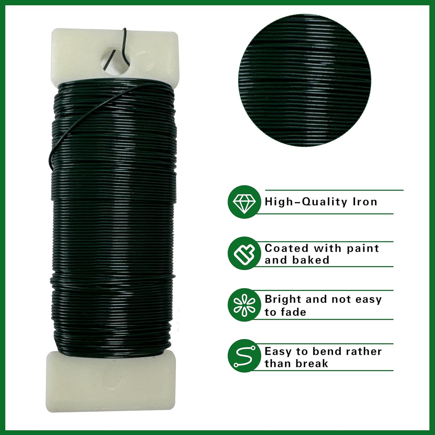 Green Floral Wire 1 Pack 38 Yards 22 Gauge Flexible Paddle Craft Wire for Wreath Making, Christmas Tree, Floral Arrangements and DIY Crafts