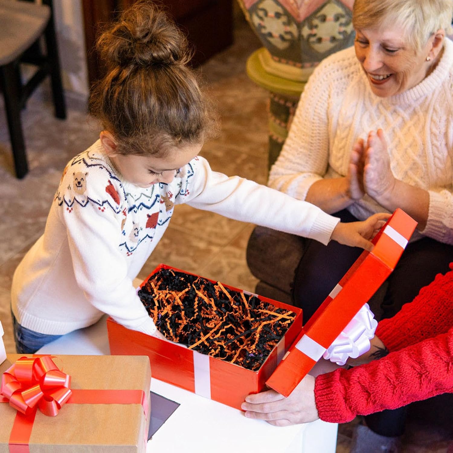 - 【Crinkle Cut Paper Shred】Display your products with fun and colorful Crinkle Cut Paper to create a memorable gift-giving experience with your tasteful choice of gift-wrapping fillers. Ensuring your gifts are beautifully presented. With 1LB Black Orange of crinkle cut paper shred filler, you'll have plenty to fill those extra spaces in your packages, is suitably provides maximum protection for your gifts.