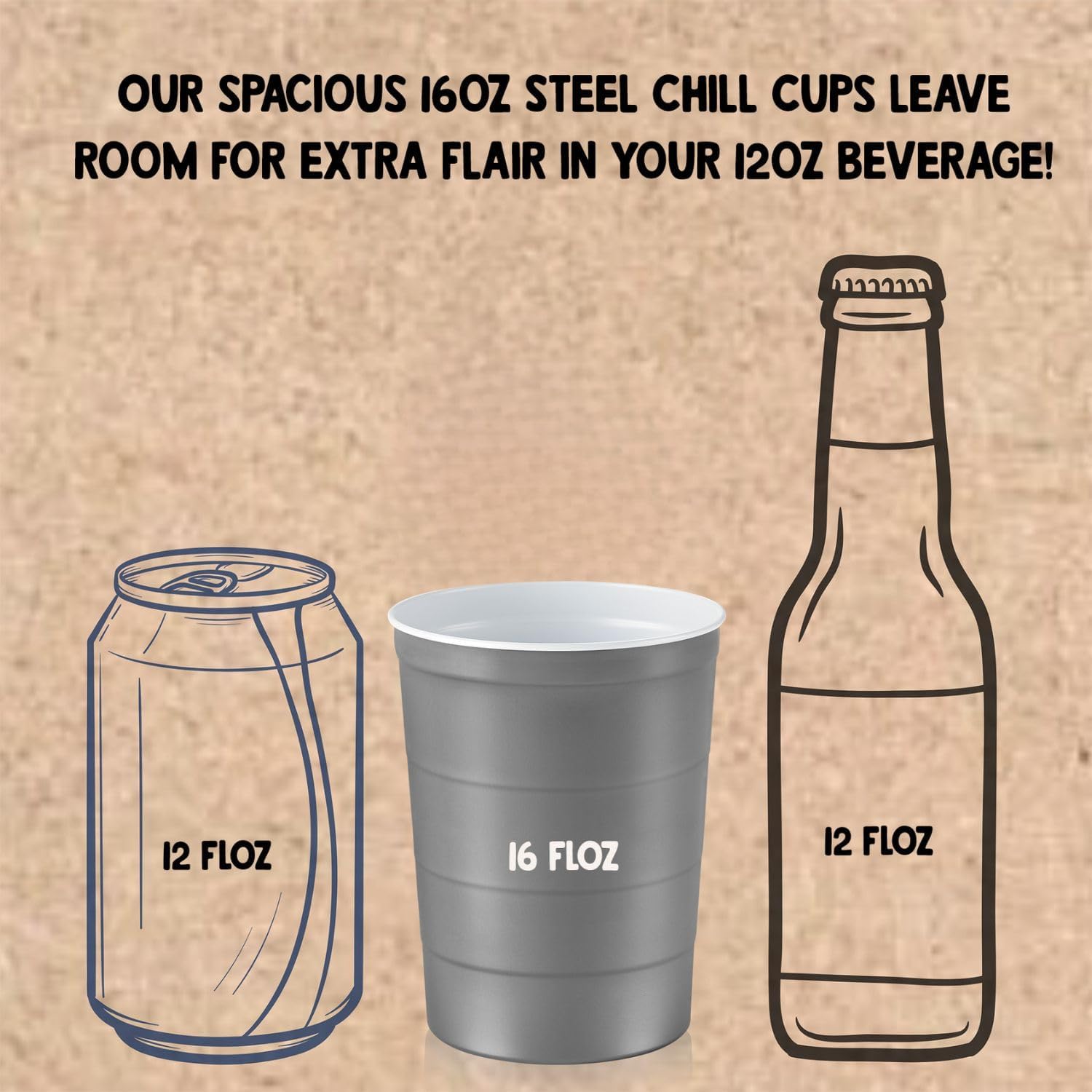 - Versatile Party Cup: Whether sipping iced coffee, enjoying a beer, or mixing up some cocktails, Steel Chill Cups are ready with a trendy and sleek metal look, which fits into any party theme or kitchen set