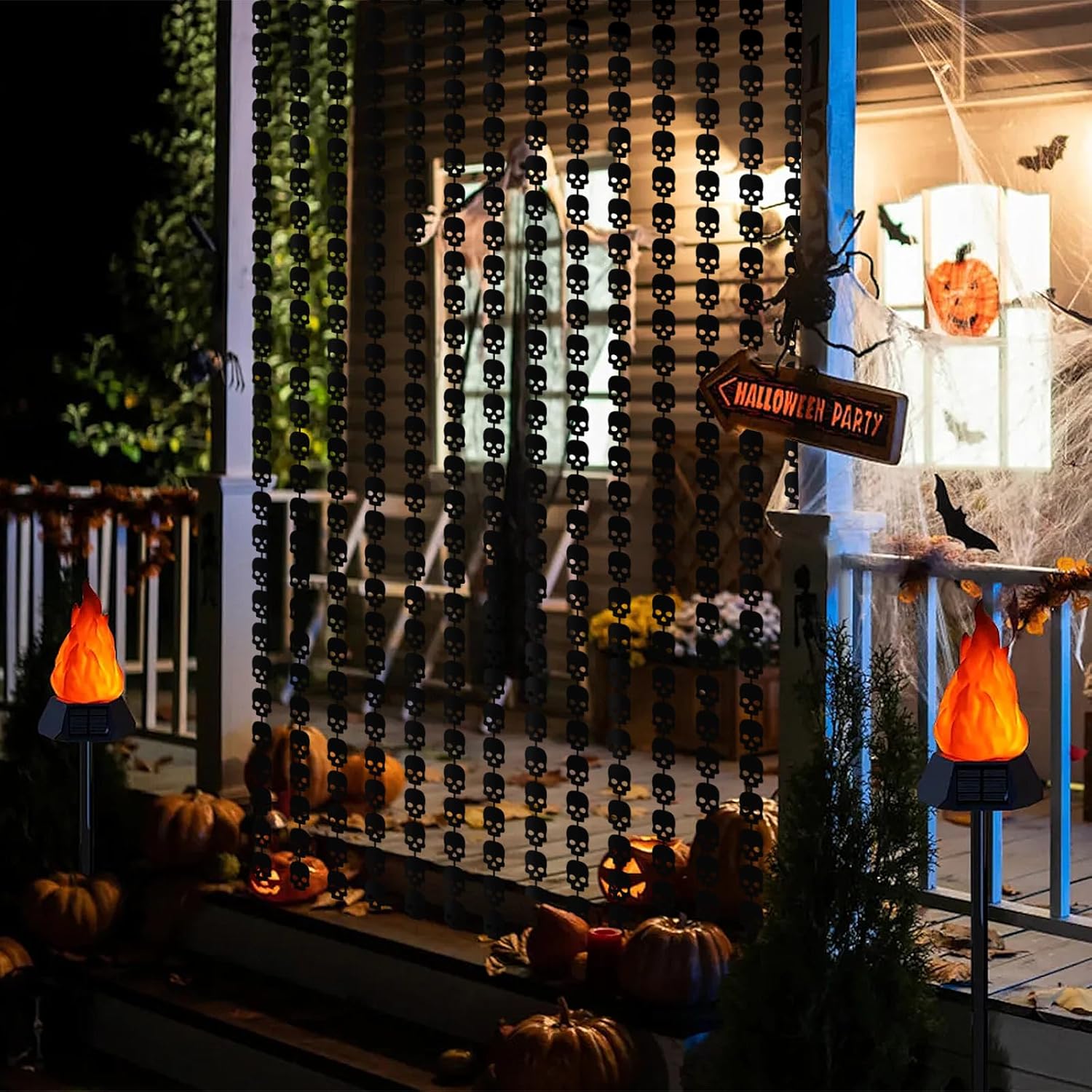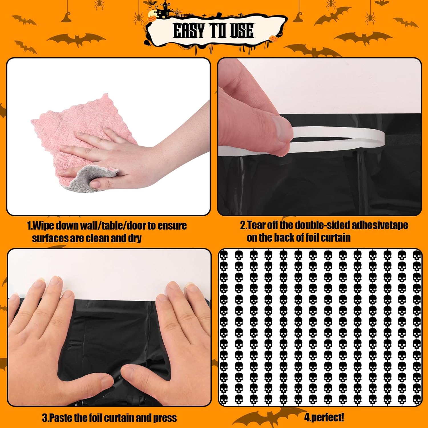 - PACKAGE INCLUDED : 2 pack of black Skull foil fringe curtains, the size of each tinsel curtain is 3.2 ft x 6.5 ft, enough length for hanging on a door or covering a wall fully, suitable for any parties.