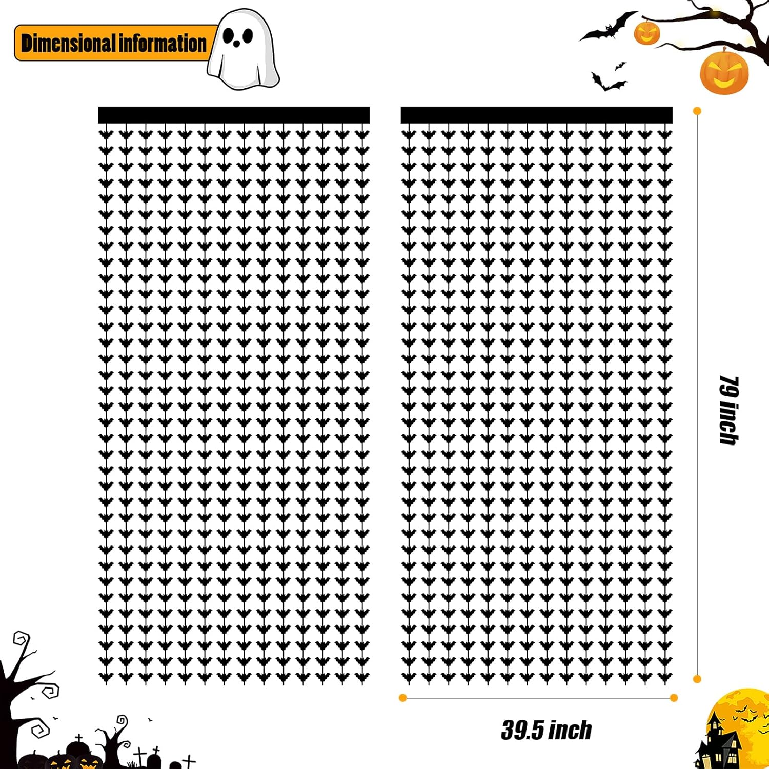 - PACKAGE INCLUDED : 2 pack of black bat foil fringe curtains, the size of each tinsel curtain is 3.2 ft x 6.5 ft, enough length for hanging on a door or covering a wall fully, suitable for any parties.