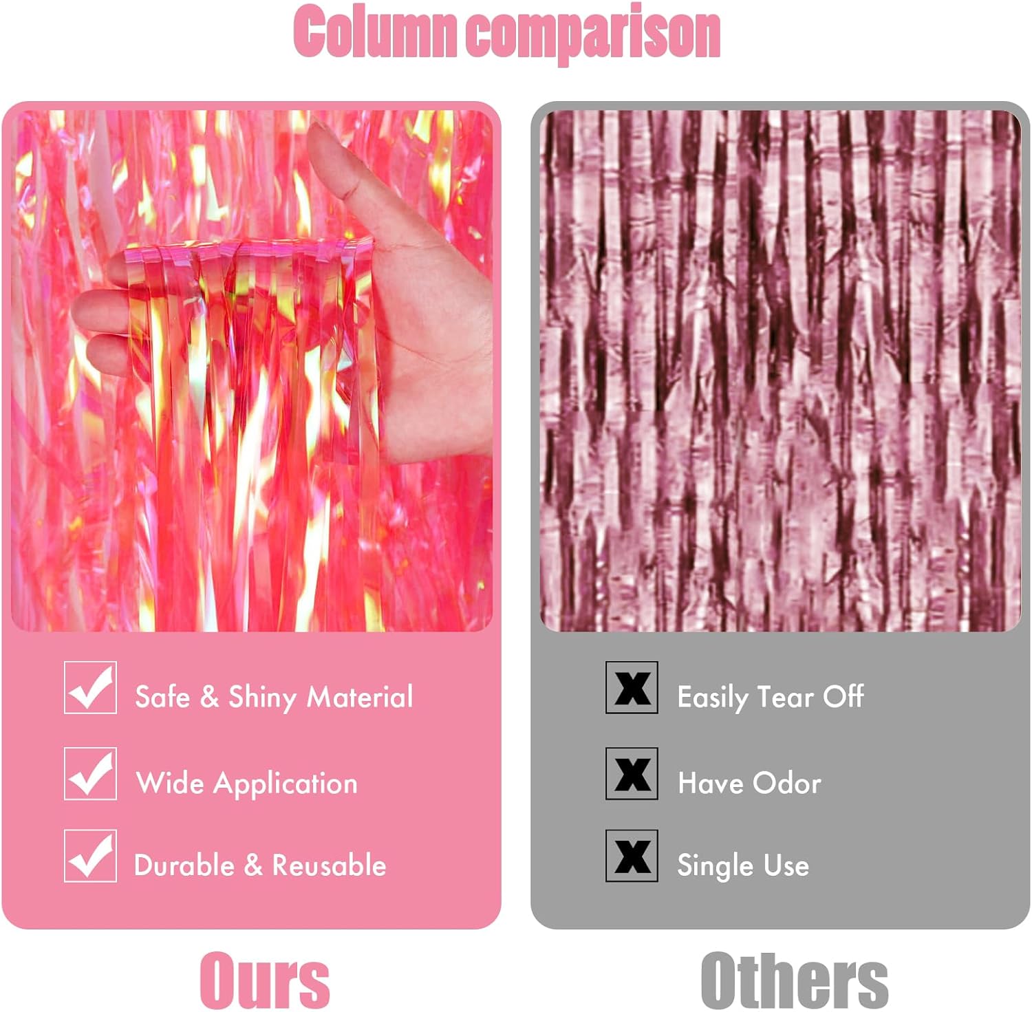 - PREMIUM MATERIAL- This clear pink tinsel backdrop is made of high-quality shiny tinsel, non-toxic, odorless, and non-fading, safe for families with children and pets. Just transform your home into a shining streamers happy birthday decorations, and enjoy the party.