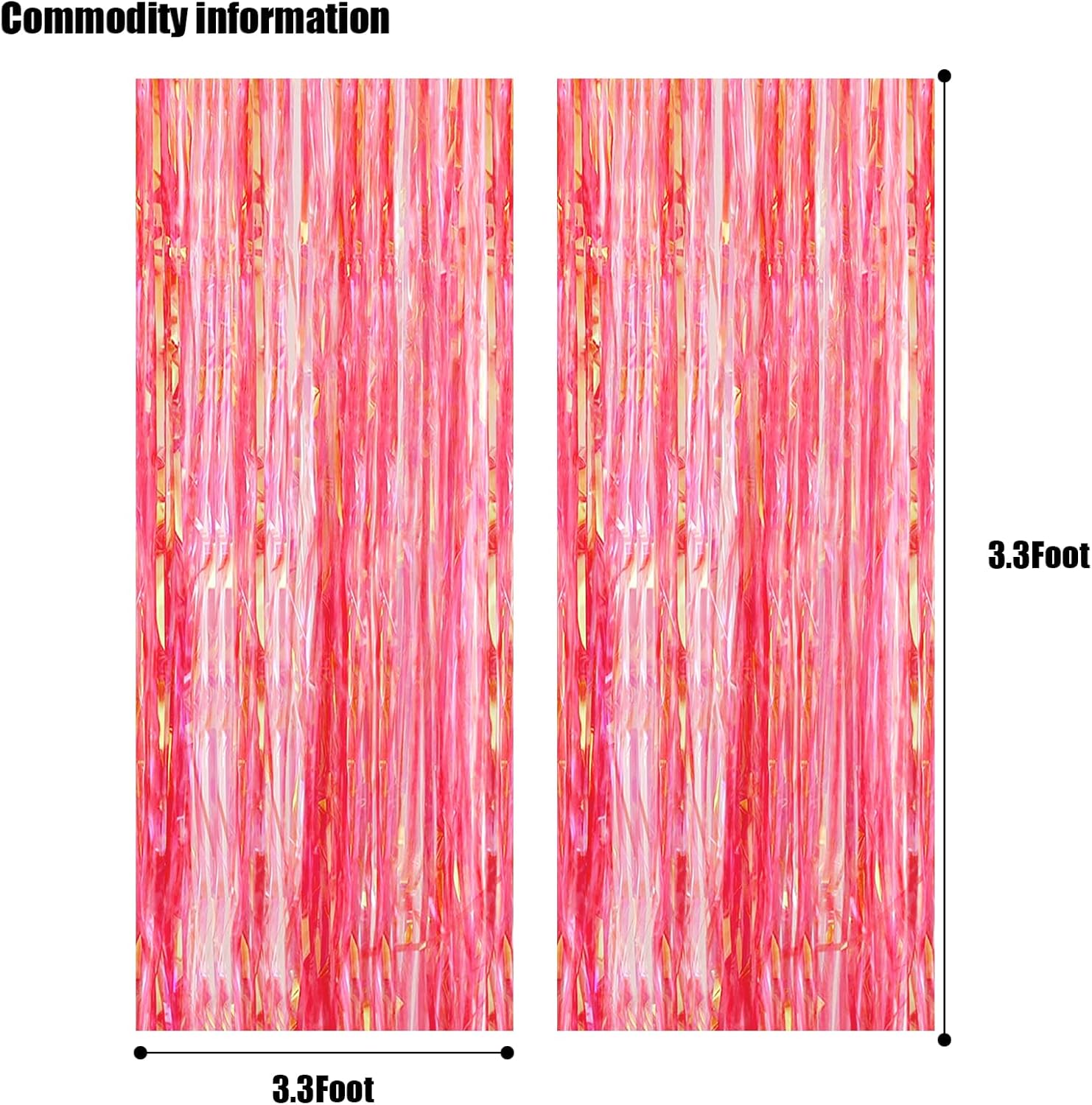 - PACKAGE INCLUDED : 2 pack of clear pink foil fringe curtains, the size of each tinsel curtain is 3.2 ft x 6.5 ft, enough length for hanging on a door or covering a wall fully, suitable for any parties.