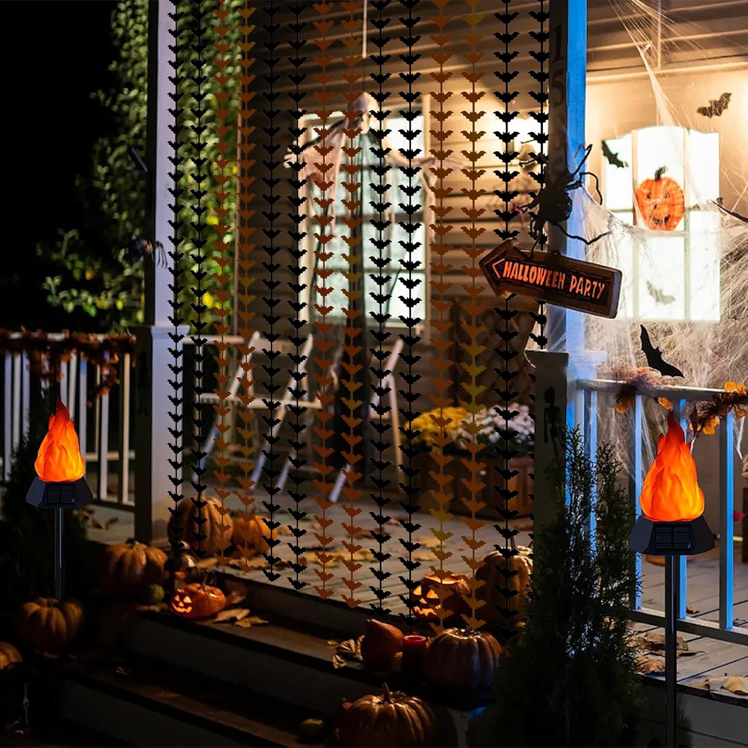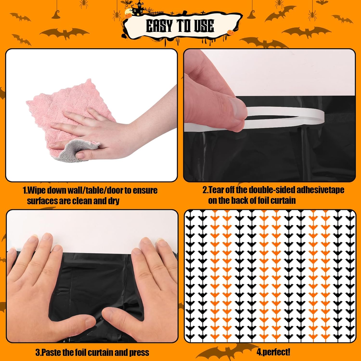 - PACKAGE INCLUDED : 2 pack of black and orange bat foil fringe curtains, the size of each tinsel curtain is 3.2 ft x 6.5 ft, enough length for hanging on a door or covering a wall fully, suitable for any parties.