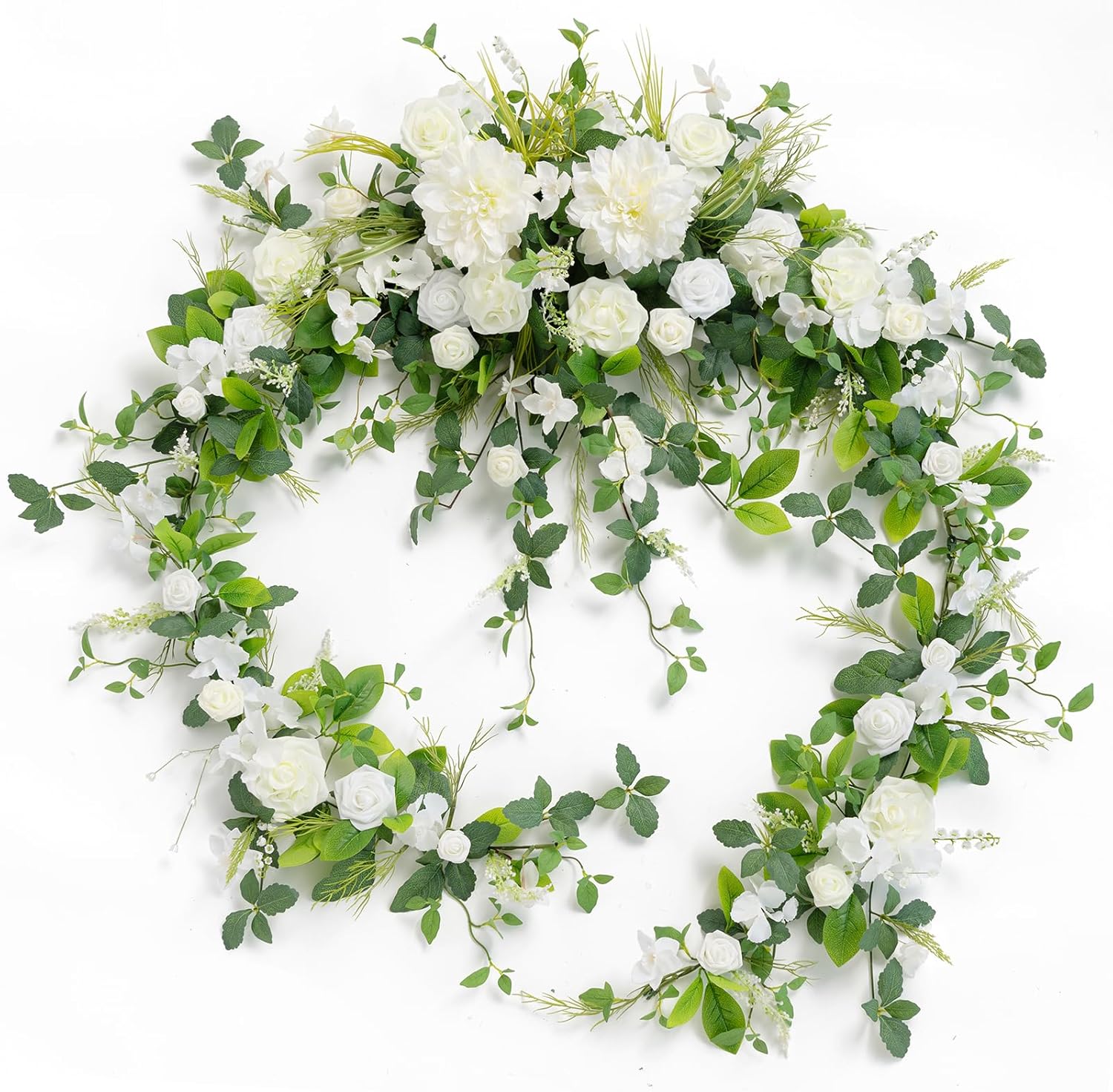 - Suitable for a 4ft long sweetheart table: fuller flowers center part on the table, and 2ft garland hanging down on both sides. Or Suitable for 8-9FT head table (using 1 garland), or 24FT spice long guest table (using 3 garlands).