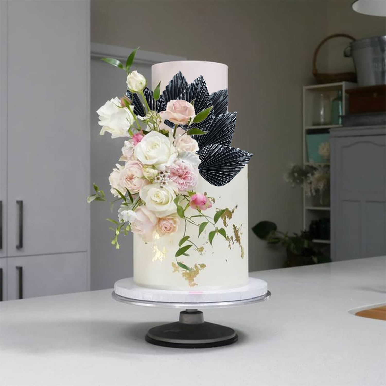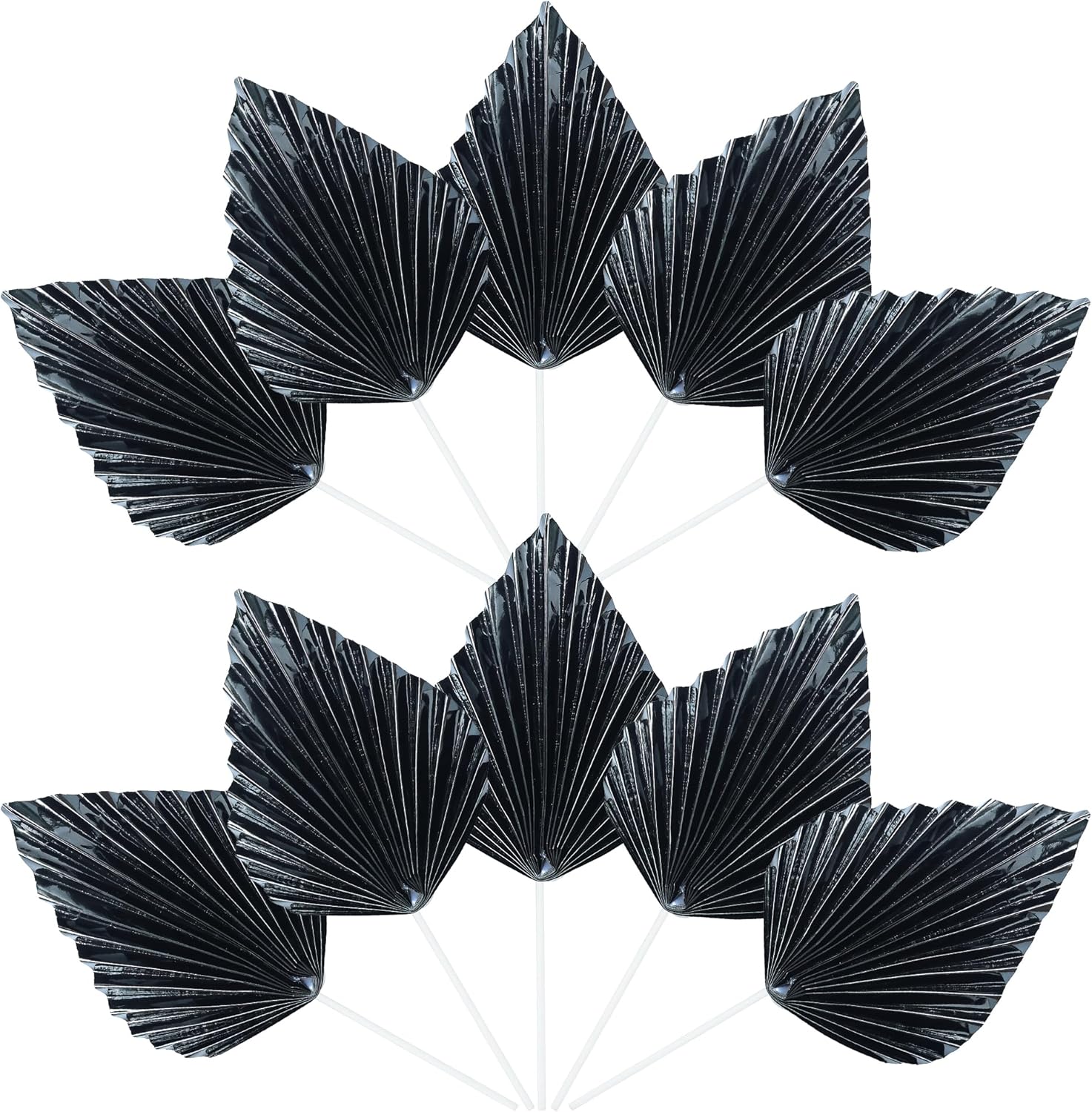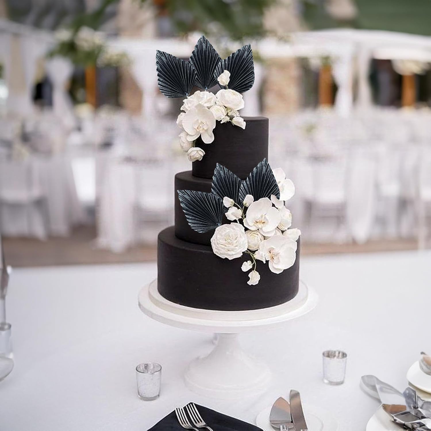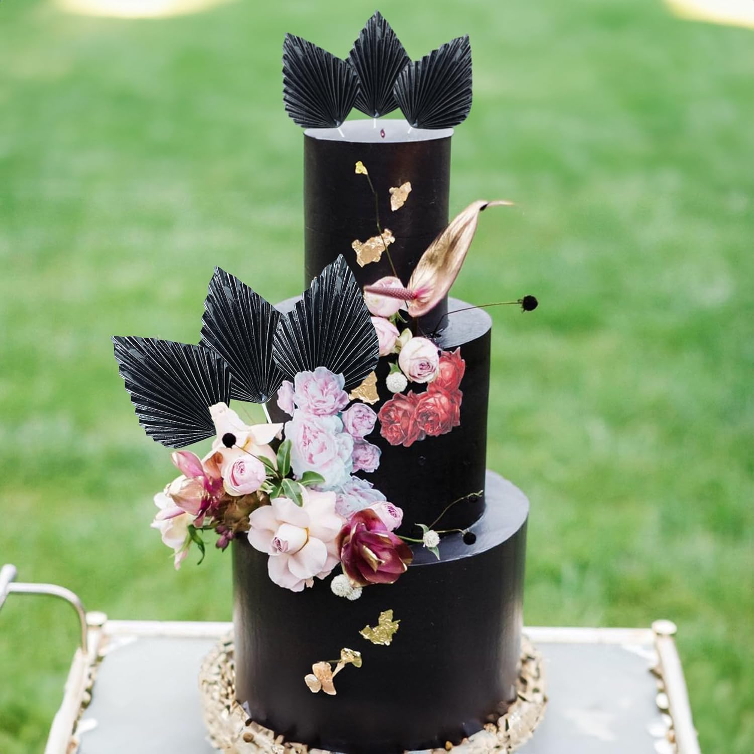 Ephlyn 6Pcs Paper Palm Leaves Fan Cake Toppers Palm Leaf Fan Cake Picks Craft DIY Fan Cupcake Toppers Palm Spear Leaves Cake Decorations for Baby Shower Wedding Birthday Party Supplies Bright Black