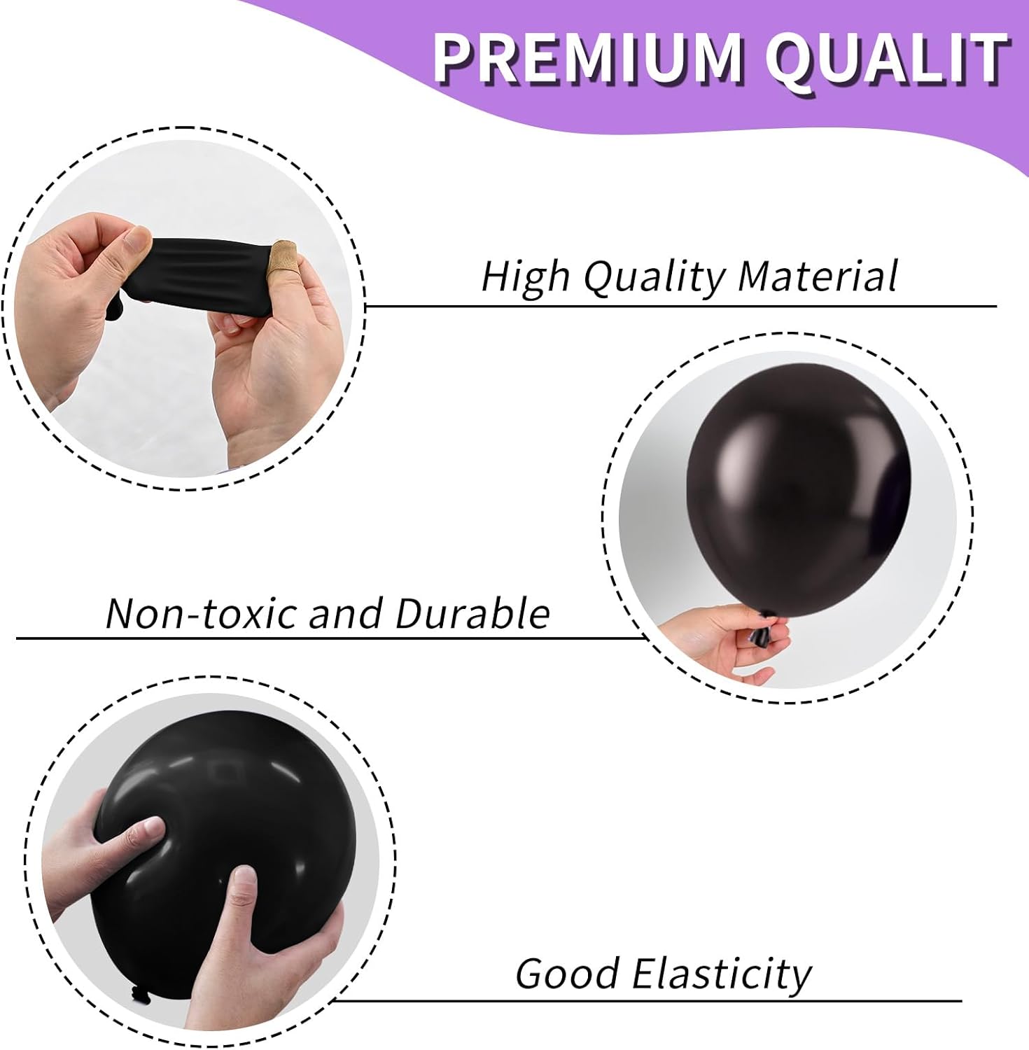 - Premium Quality: Our purple black balloons are crafted from quality latex, it offer superior elasticity and persistence, ensuring they are less likely to burst. No strong odor, children can use them with confidence. Suitable for any event, these balloons will add a reliable, vibrant touch to your celebration. Enjoy festivities with our superior balloons!