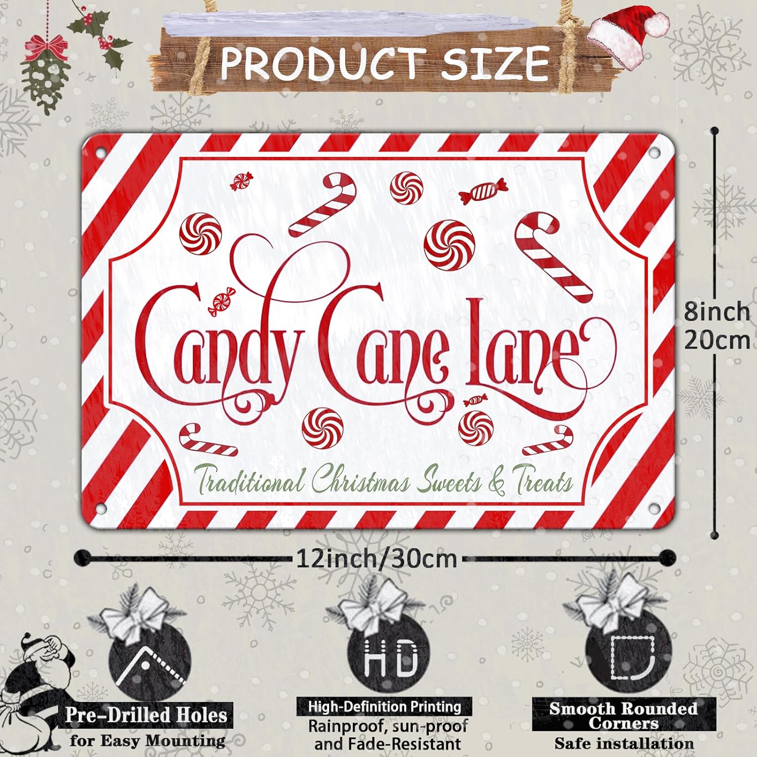 - Christmas Candy Cane Lane Metal Sign Easy To Install : The Vintage Christmas Tin Sign has Rolled Edges and Rounded Corners to Avoid Injury, Plus It Comes With 4 Pre-Drilled Holes, Requiring No Adhesive or Special Equipment. This Christmas Sweets Metal Sign is Designed to Withstand Outdoor and Indoor Conditions, So You Can Display It Anywhere You Like.