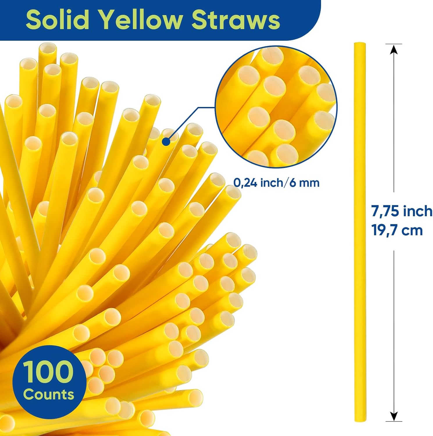 Solid Yellow Disposable Paper Drinking Straws 7.75 inch 100 Counts - for Beverage, Birthday, Party, DIY Arts Crafts