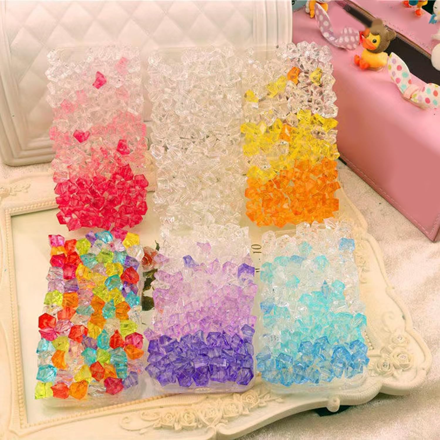 Fake Crushed Ice Cubes 1000pcs Multicolor Acrylic Crystal Rocks Multi Colored Fake Ice Rocks Acrylic Gems Stones for Easter Vase Fillers Mermaid Birthday Party Wedding Floral Arrangement Home Decor