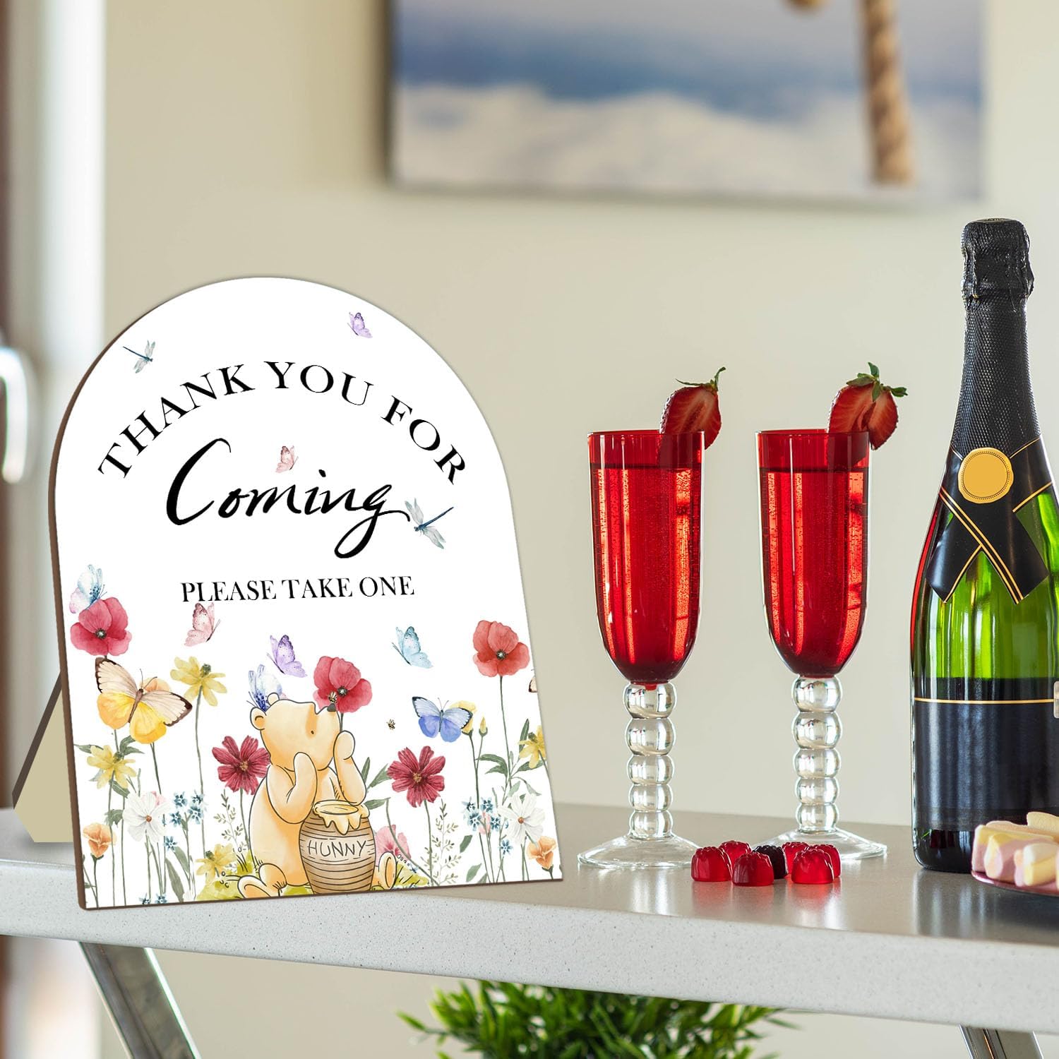 Winnie Bridal Shower Sign, Classic Pooh Thank You Wooden Sign for Women Men, Floral Butterfly Decor Wedding Shower Favors Sign, Bridal Shower Gifts for Guests, Thank You for Coming Please Take One Sign 9*11IN