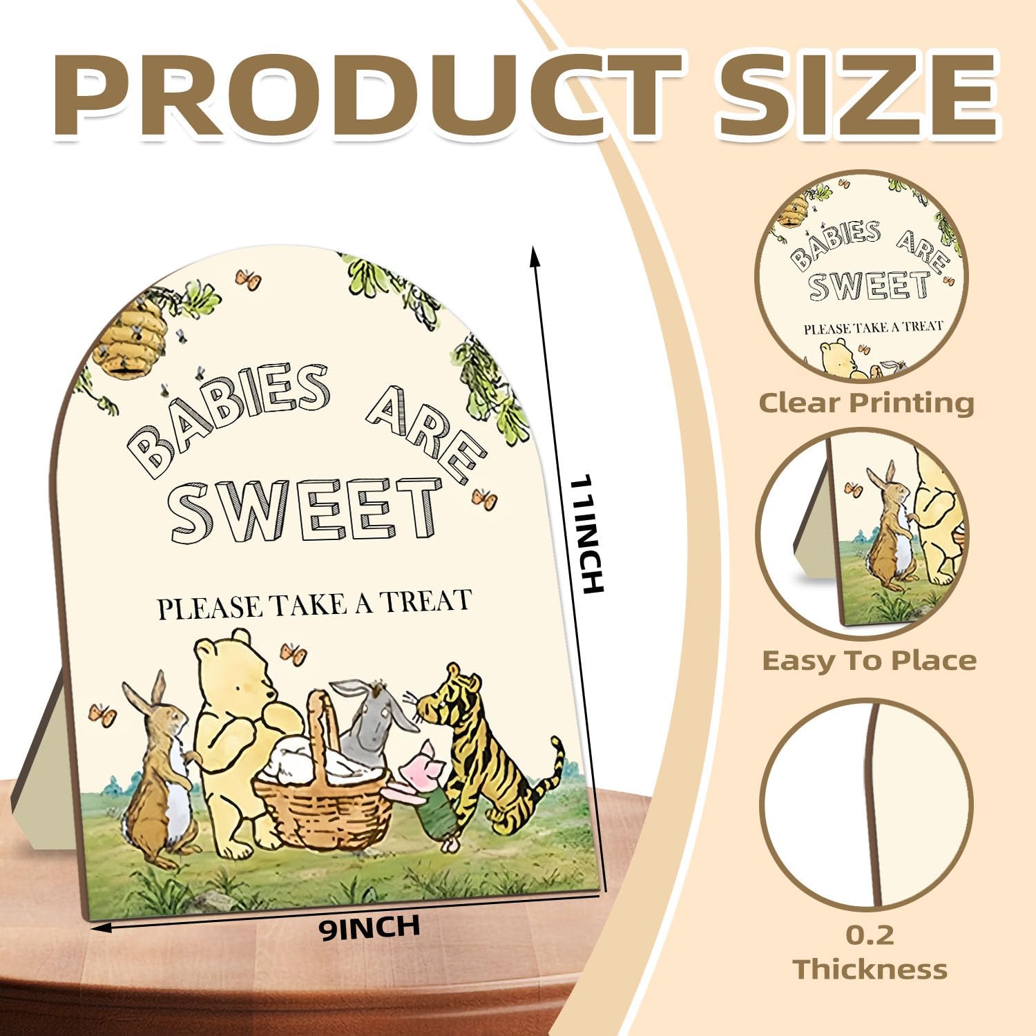 Classic Winnie Baby Shower Welcome Sign, Classic Pooh Babies are Sweet Please Take A Treat Sign, Cute Animals Decor Welcome Sign, Birthday Party Decor Supplies 9 * 11IN