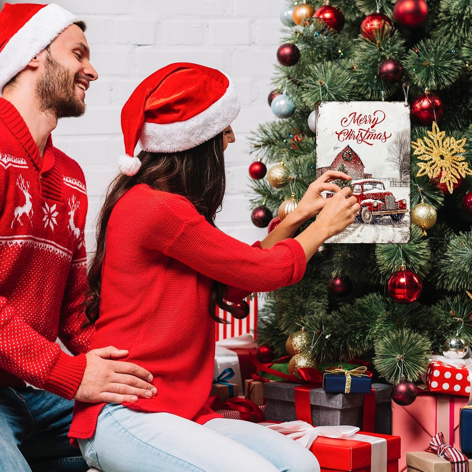 - HD Durable Merry Christmas Sign : This Christmas Red Truck Tin Sign Is Beautiful And Durable, Printed With High-Definition Uv Fade-Resistant Ink Technology, Giving It Vibrant Colors and Clear Details. It Is Easy To Clean and Maintain, Colors That Won'T Fade Over Time.