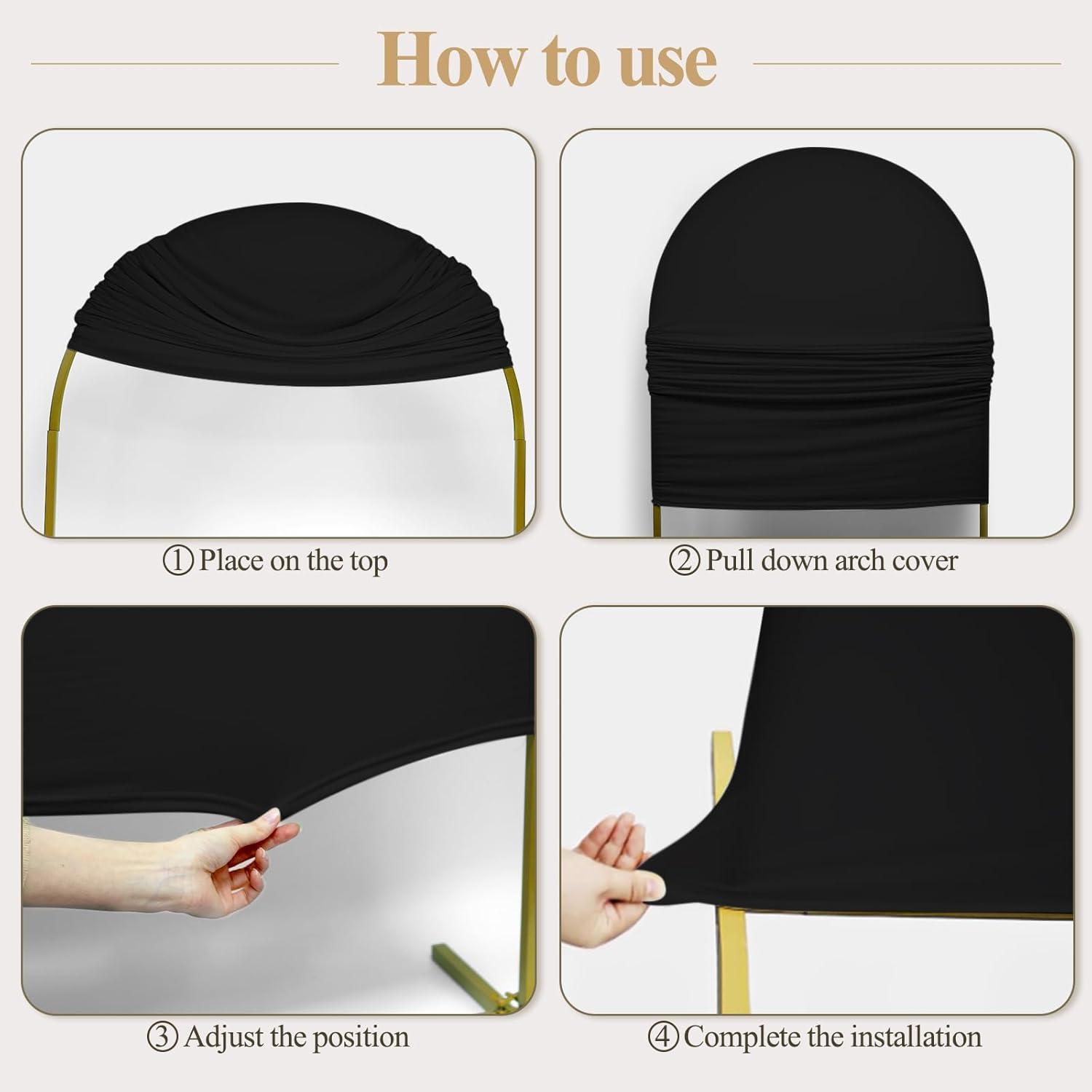 Ledido Wedding Arch Backdrop Cover 6FT Arch Covers Fitted Stretchy Spandex Round Top Stand Backdrop Cover for Wedding Banquet Ceremony Birthday Party Baby Shower Event Decoration,Black