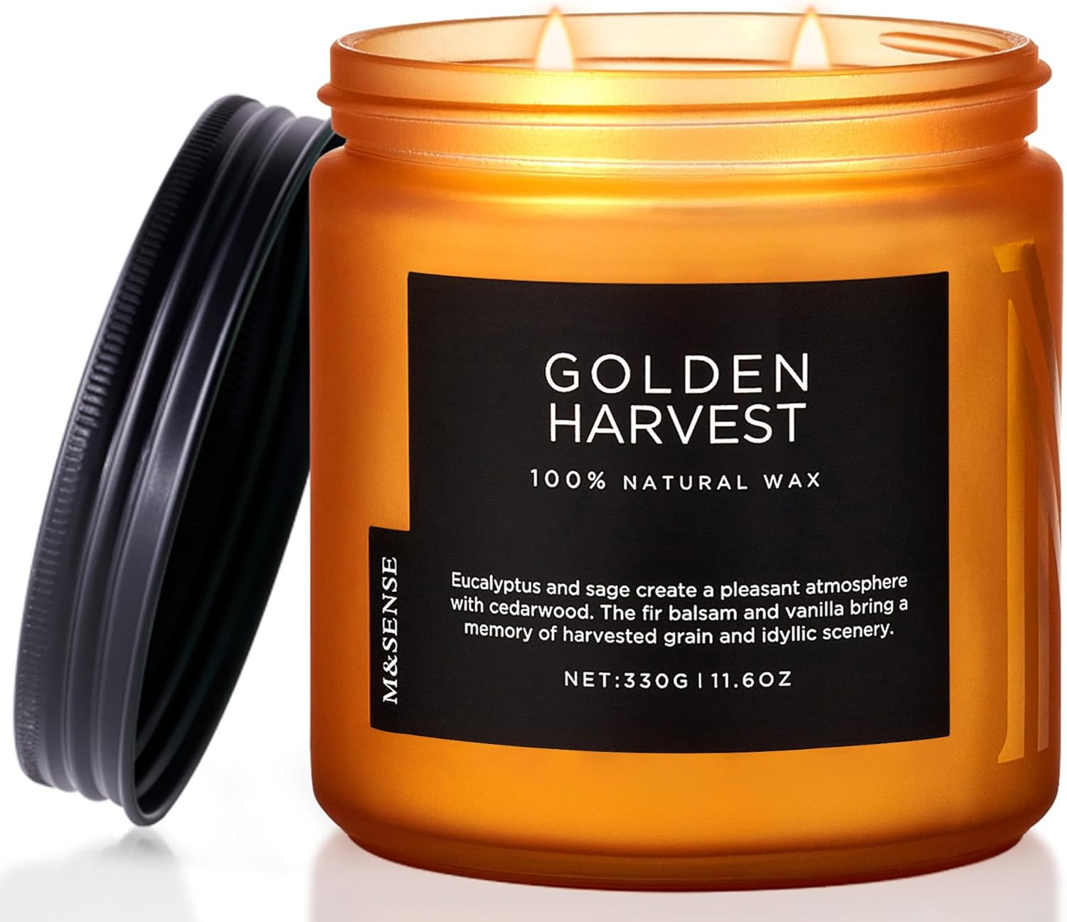 M&SENSE Fall Harvest Scented Candle, 11.6oz Natural Soy Wax 70 Hours Long Lasting Highly Scented 2 Cotton Wick Candle Gifts for Birthday Holiday, Decorative & Home