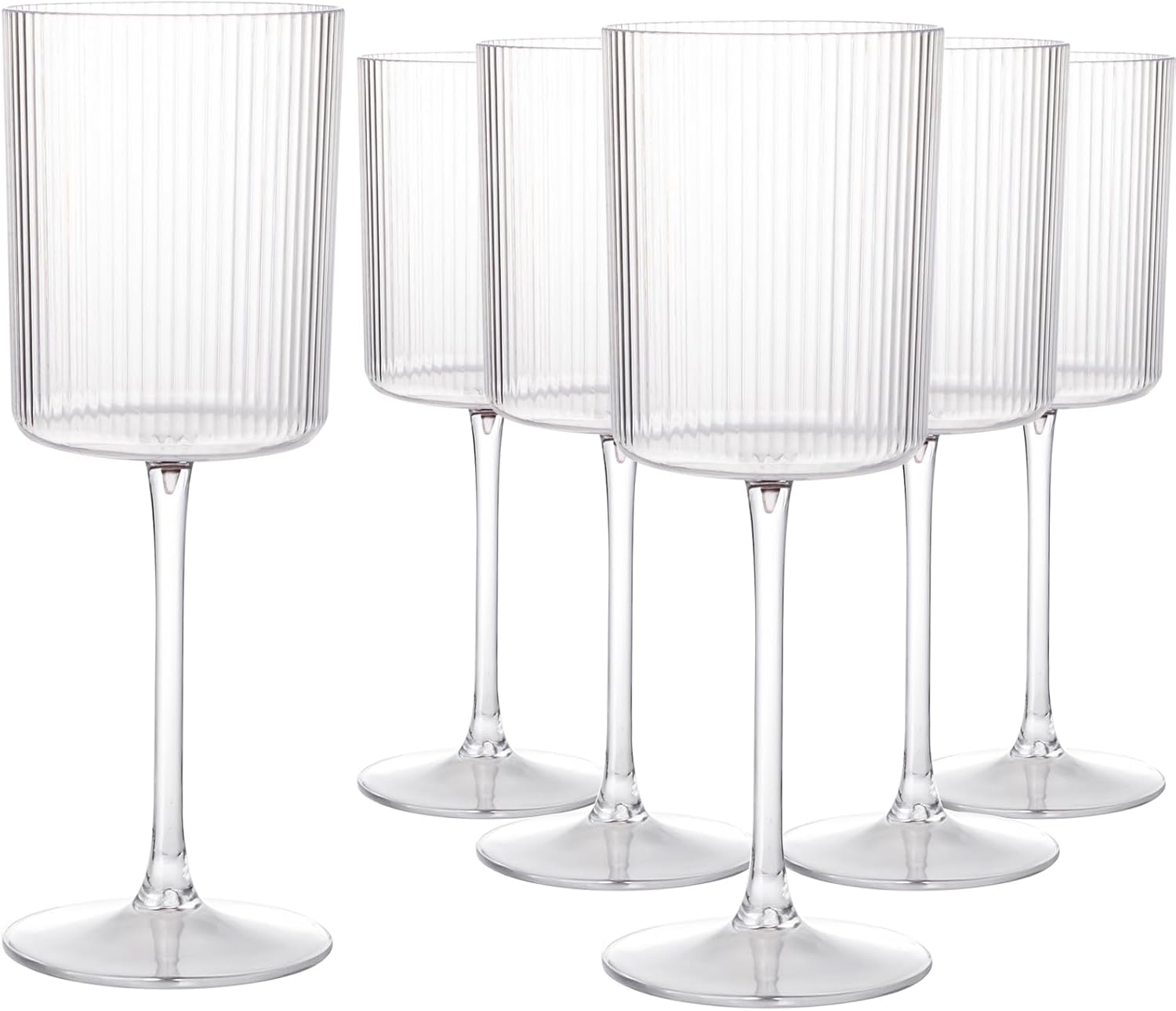 Ciaell 12 PCS Plastic Ribbed Wine Glasses - 10 OZ Plastic Square Wine Glasses with Stem - Disposable Champagne Cups for Parties & Weddings & Party