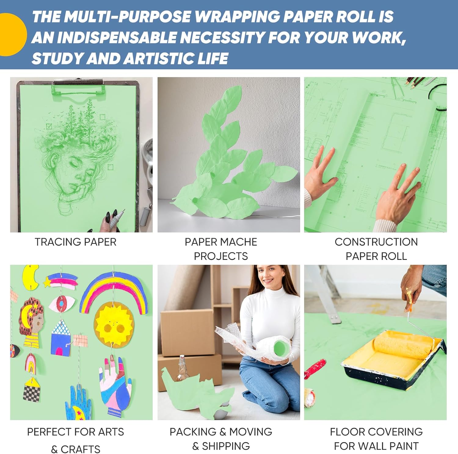 - 【Endless Light Green Packing paper】With 38 feet of packing paper in a roll, you have enough paper to complete multiple projects without having to constantly restock. It saves you time and money compared to buying smaller rolls or sheets of paper. This blank canvas is a must-have paper roll item for packing, crating, shipping, moving, mailing, postal, parcel, sublimation printing, packaging fillers, table runner and floor coverings