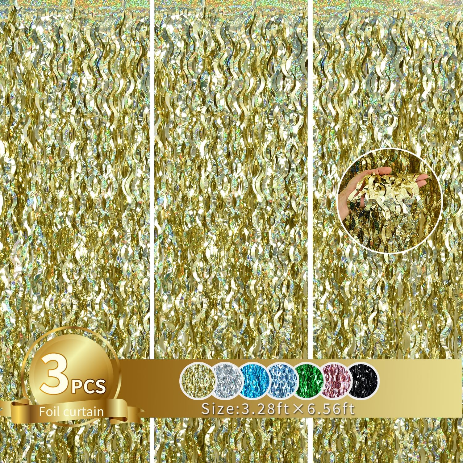 - PACKAGE CONTENTS: 3 x wavy foil curtains: Big size (wide x drop):1pcs 3.3 x 6.6 feet,9.9ft x 6.6ft in total.Brightly colored quality party decoration photography curtains will surely make your party more fun.