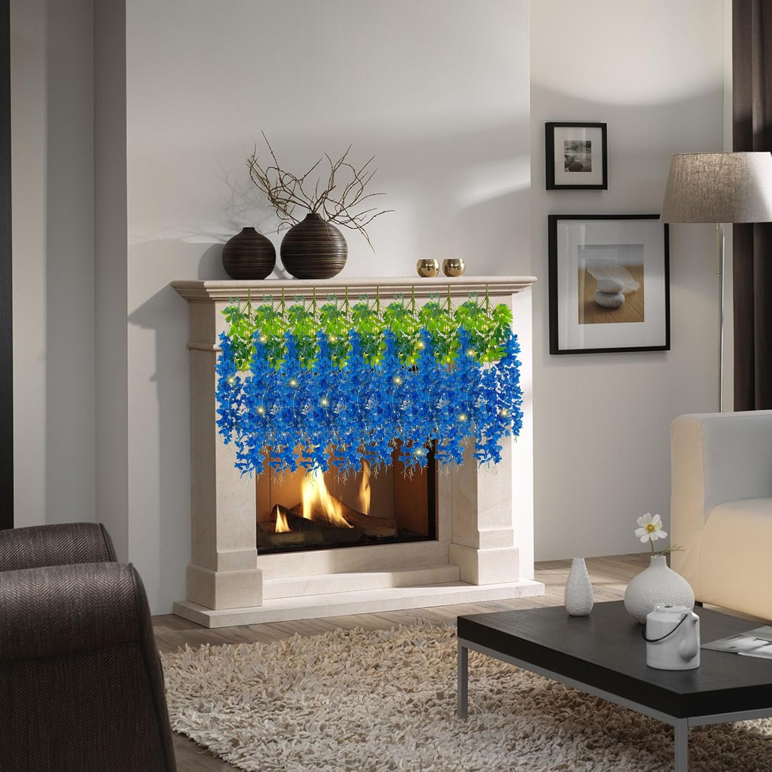- 【Wisteria Flower Vines with Lights】Whether you decorate beautiful royal blue wisteria floral garland with lights indoors or outdoors, you can achieve a magical decorative effect. Decorating the interior makes your home look full of life while decorating the exterior makes the environment more springy.With warm light string to make your decoration warmer. Note: If the package is missing the light strip, please feel free to contact us