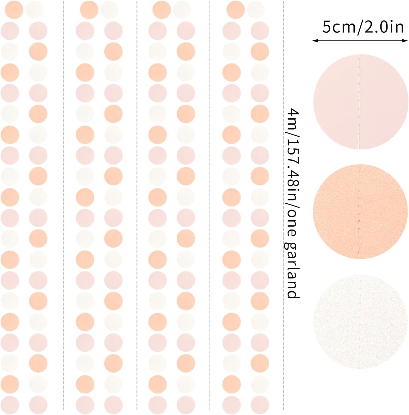 - 【Peach Pink Decorations Kit Includes】The party garlands includes 4pcs paper garlands, each backdrop bunting is 13 feet/ 4 meters long, total length is 52 feet/16 meters.