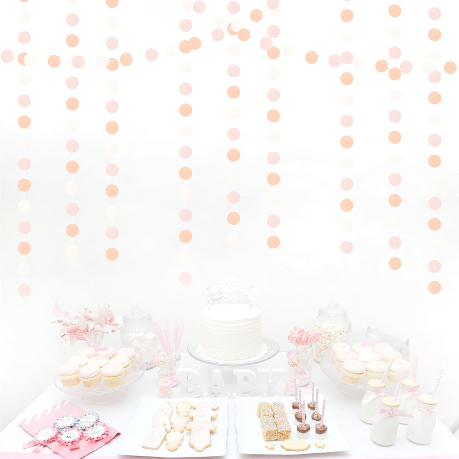 Peach-Pink White Party-Decorations Paper Garland - 52ft Princess Birthday Streamers Banner,Boho Bridal Baby Shower Bachelorette Wedding Hanging Supplies Decor Hugfond
