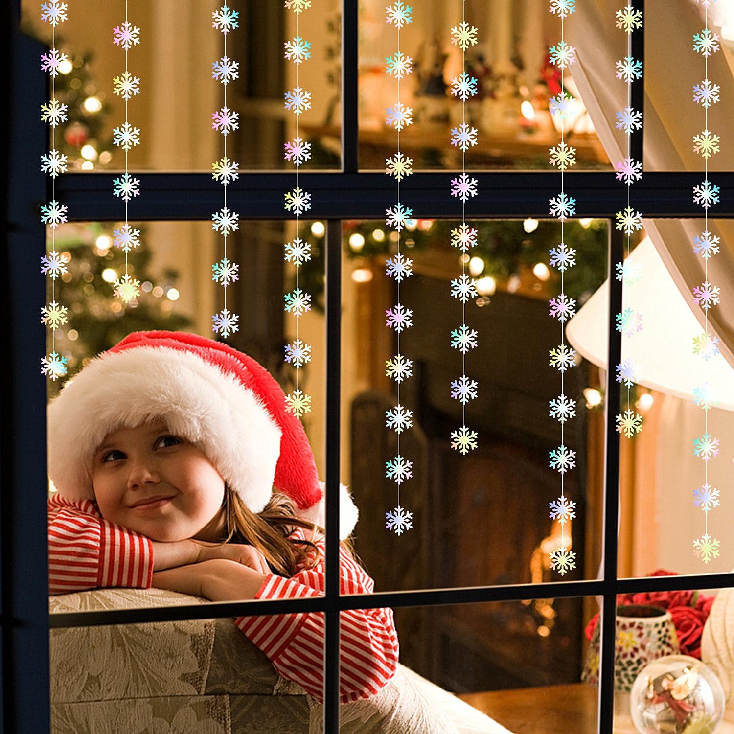 - 【Snowflake Iridescent-Holographic Christmas Decorations Kit Includes】The party garlands includes 4pcs paper garlands, each backdrop bunting is 13 feet/ 4 meters long, total length is 52 feet/16 meters.