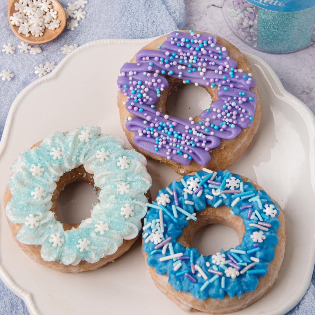 - Winter & Snowflake-Themed Sprinkle Mix – A frozen-inspired blend of white, blue, silver, and lavender sprinkles that make your desserts shimmer like snow.